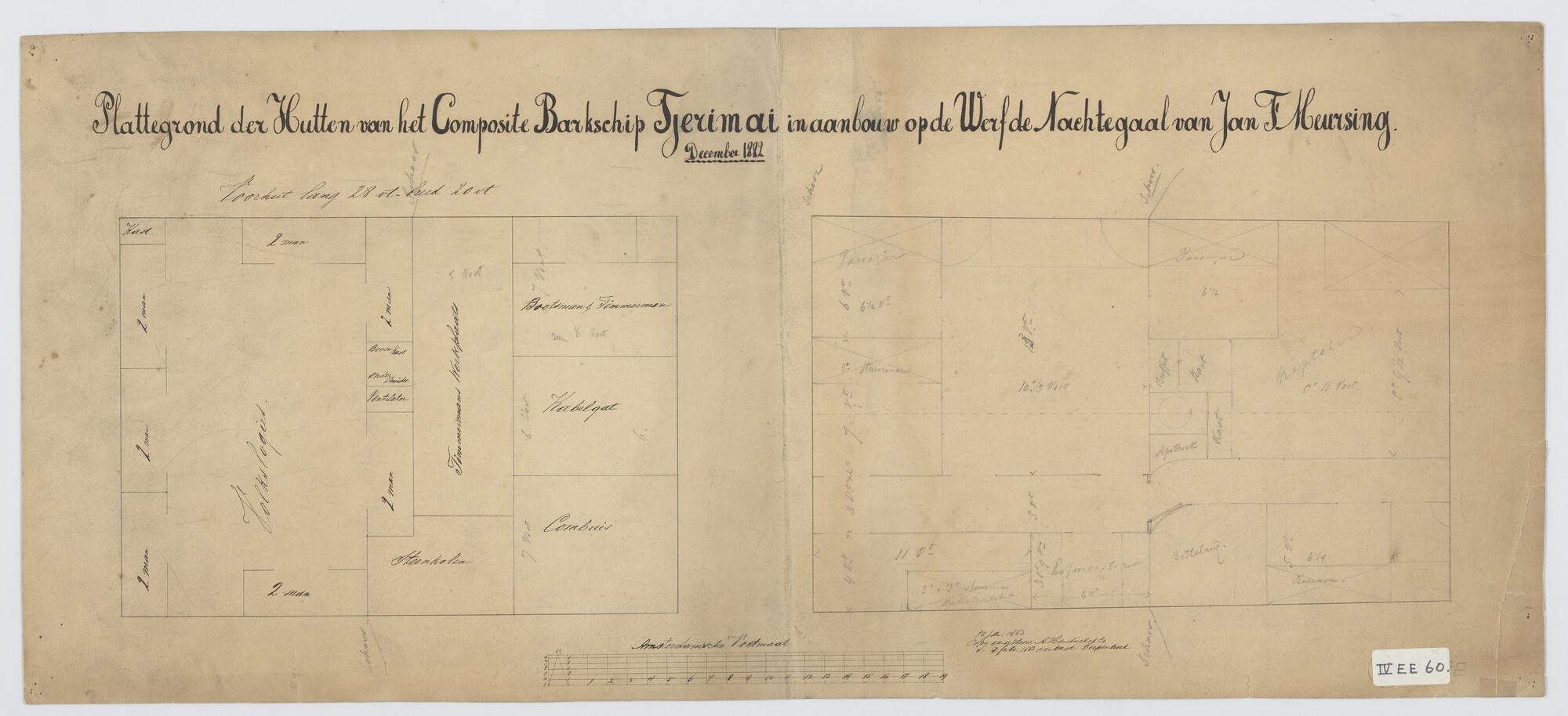 Tuigplan met afmetingen rondhout van de brik 'Elmina'