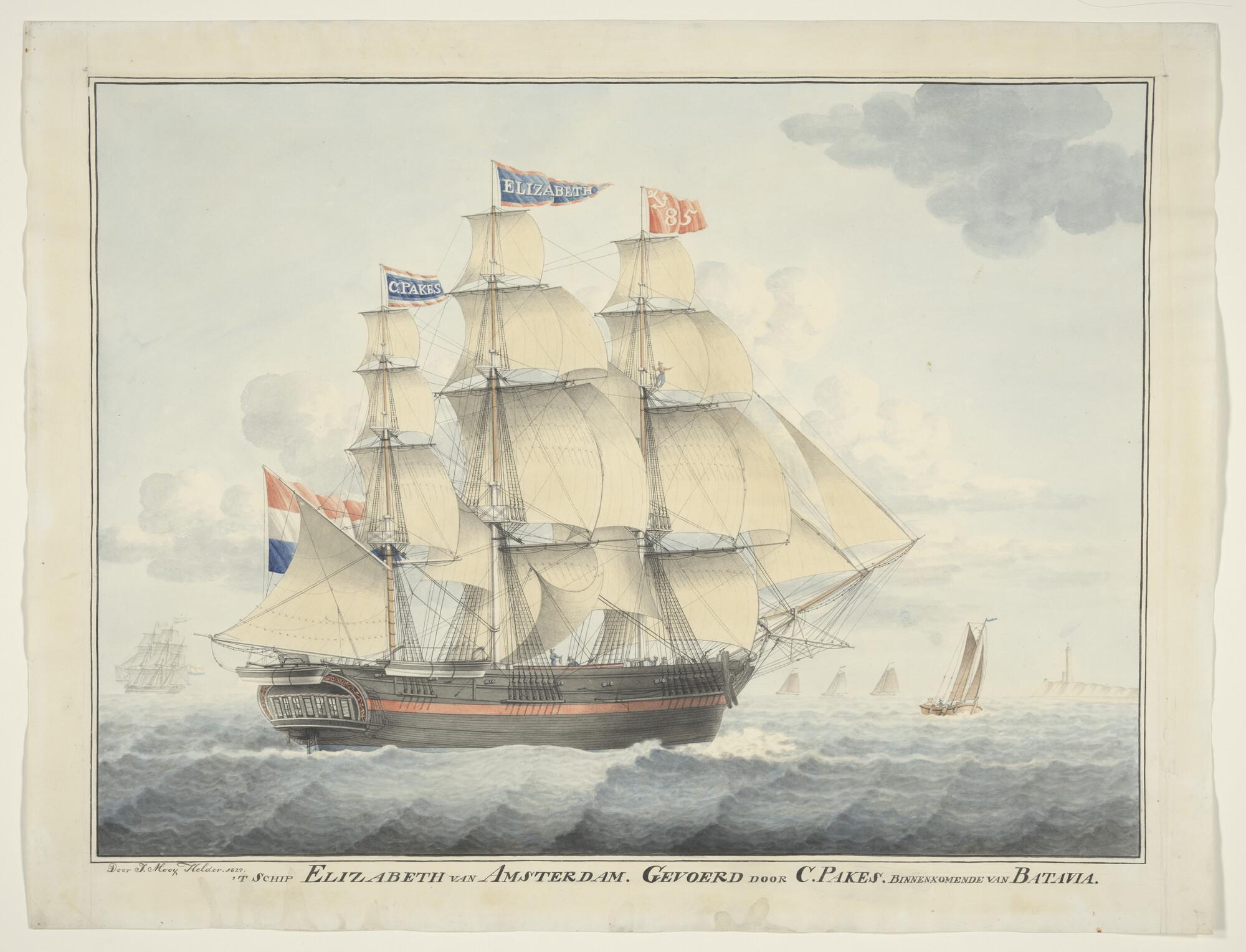 Het fregatschip 'Elisabeth' in patria terugkomend va...