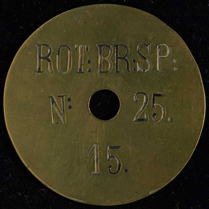 Brandweerpenning met "ROT:BR:SP: N: 25. 15."
