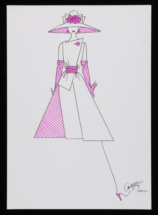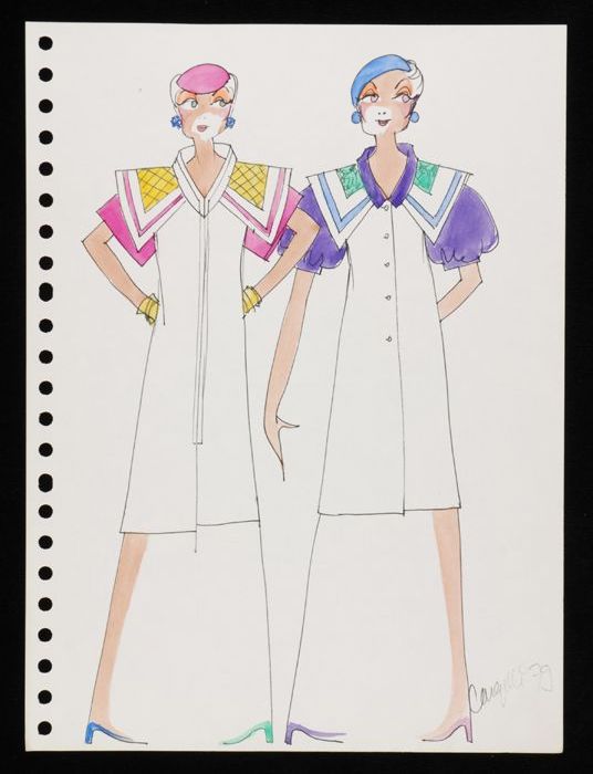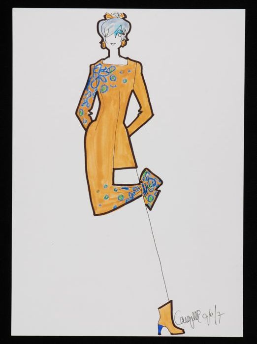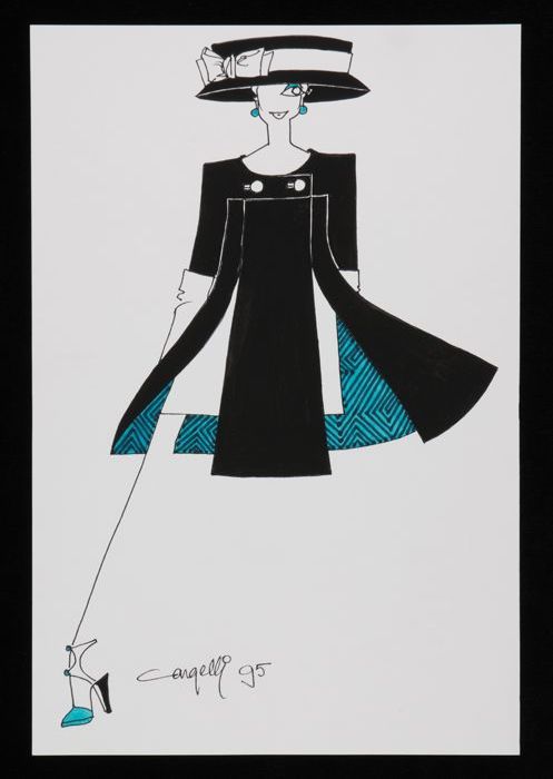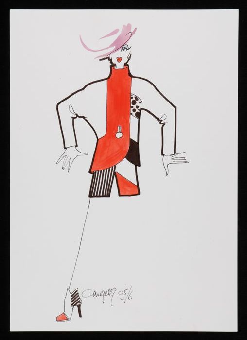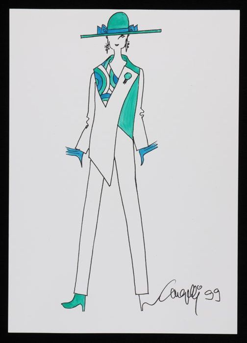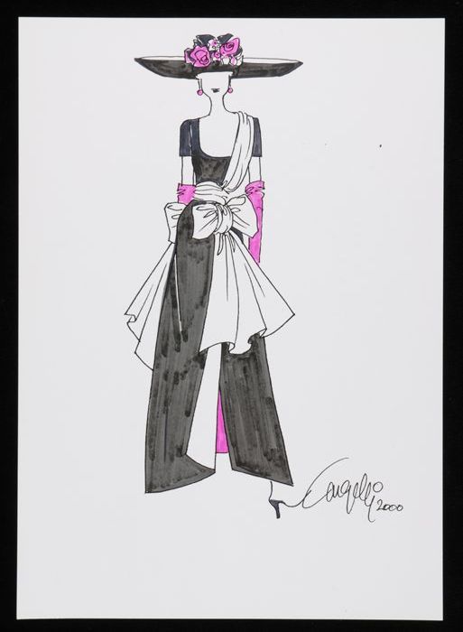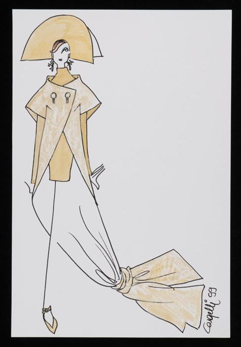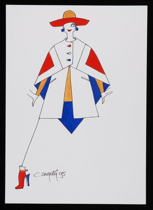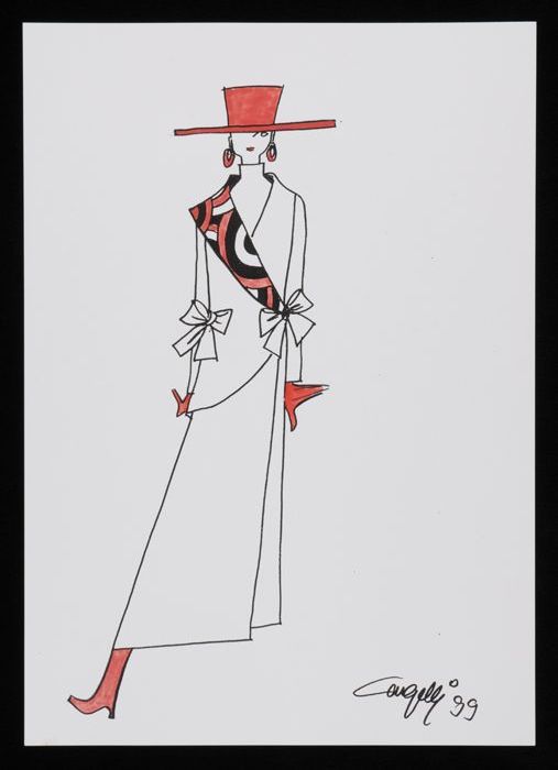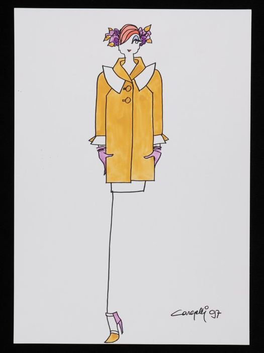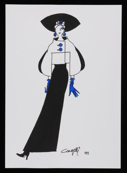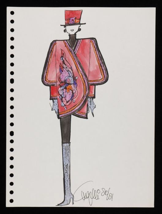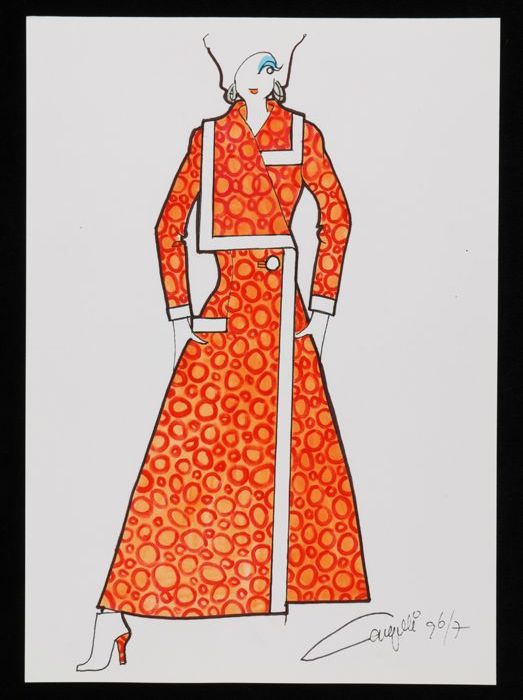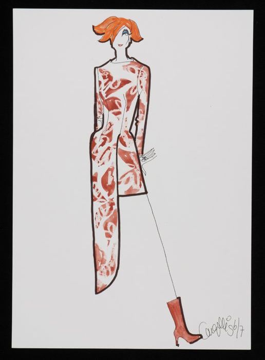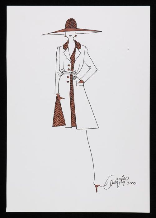 Mode-tekening, ontwerptekening in gemengde technieke...
