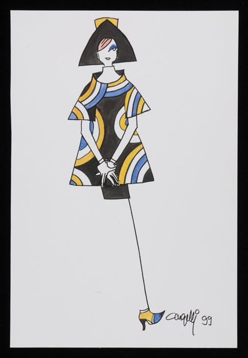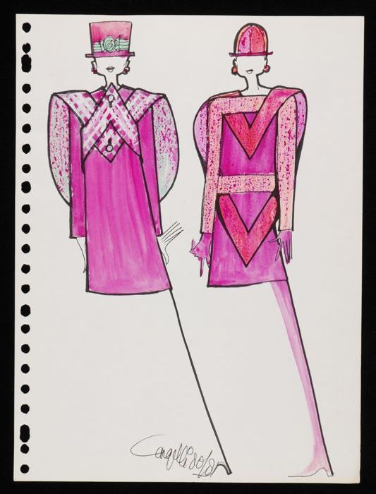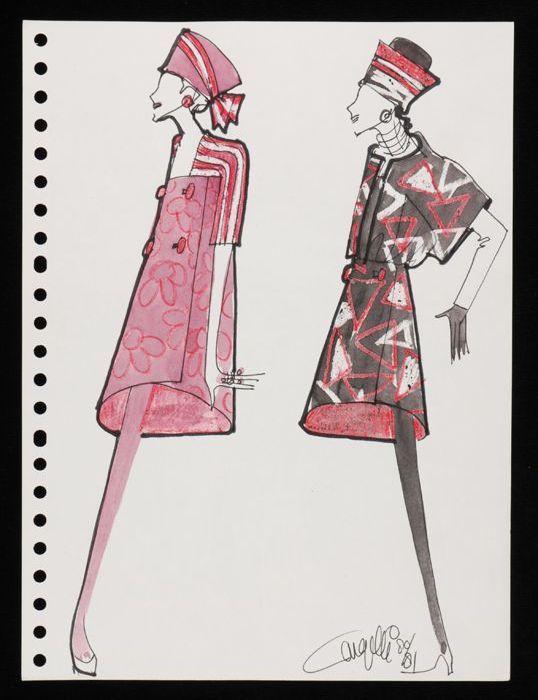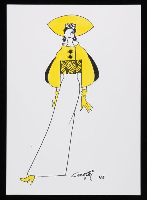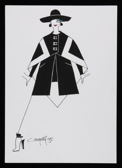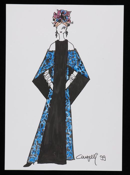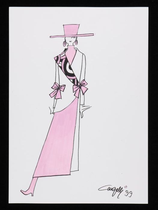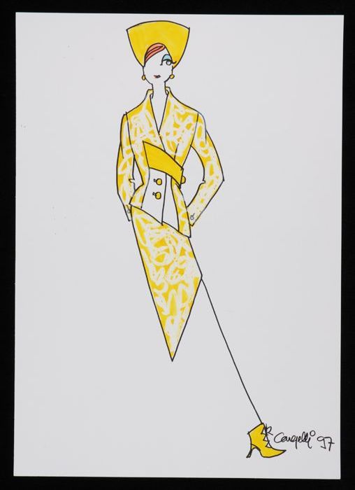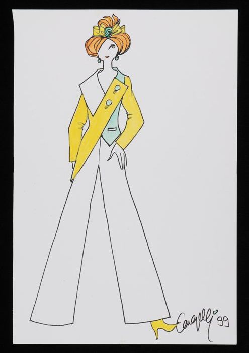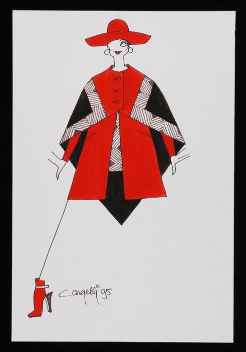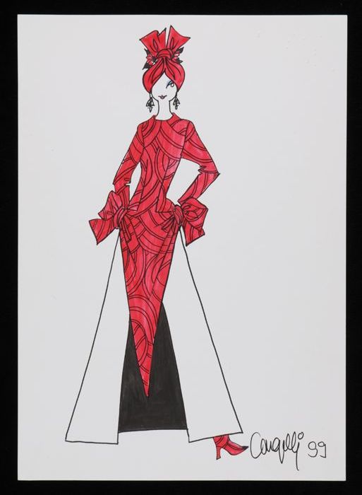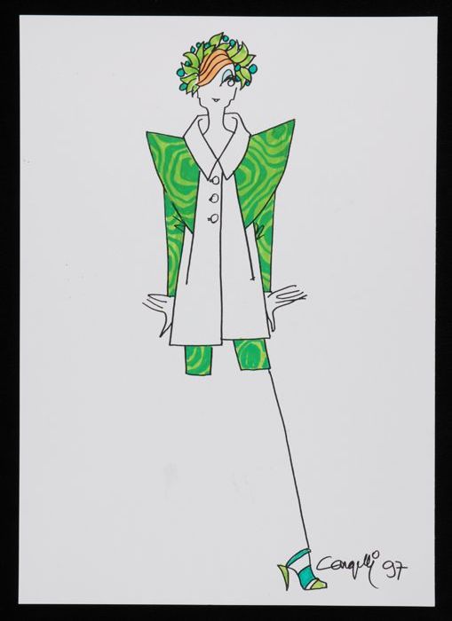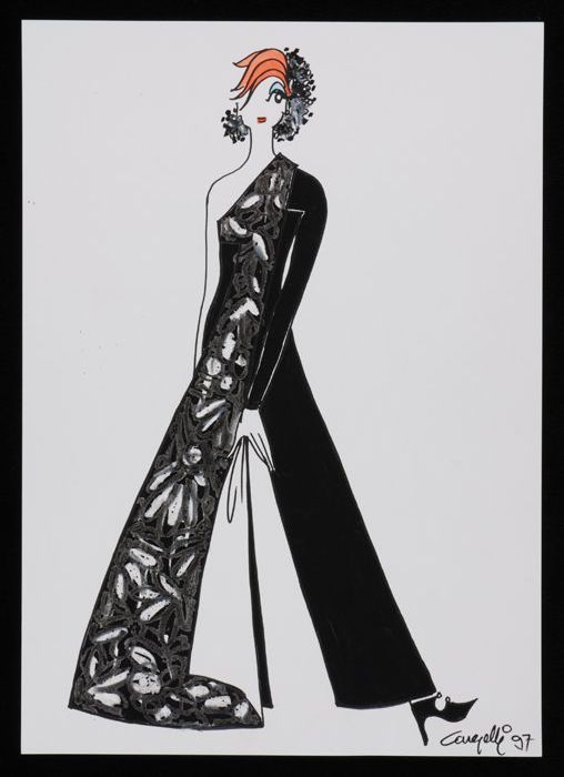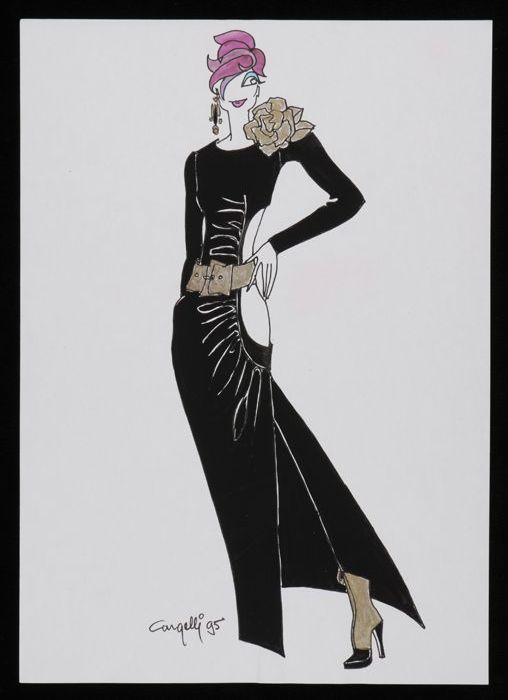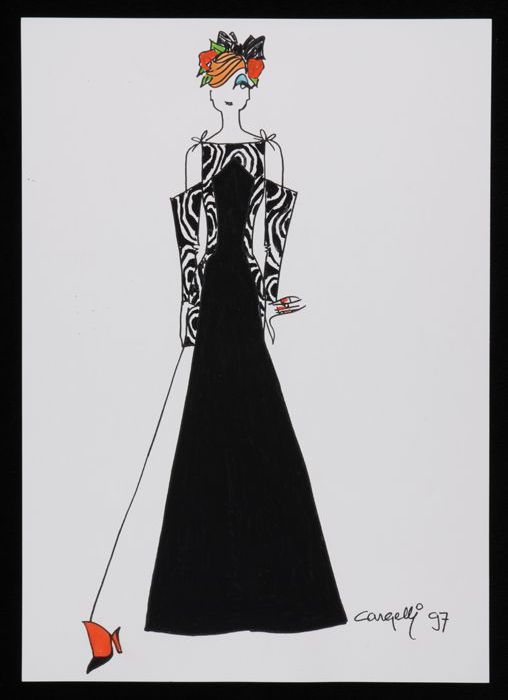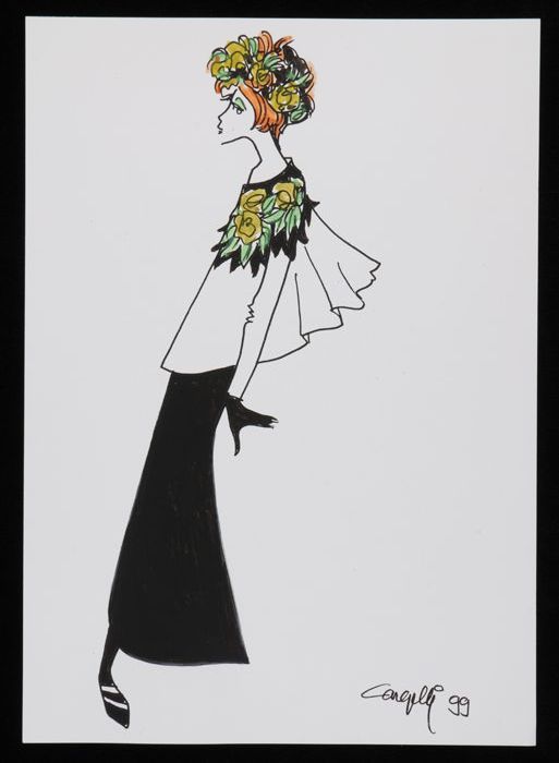 Mode-tekening, ontwerptekening in gemengde technieke...