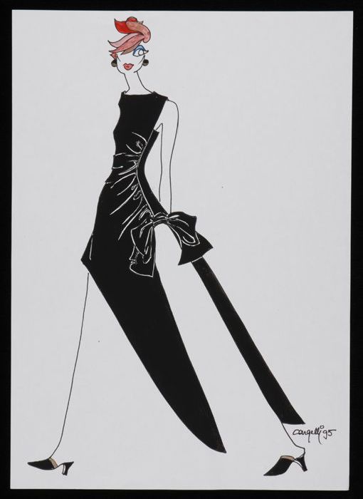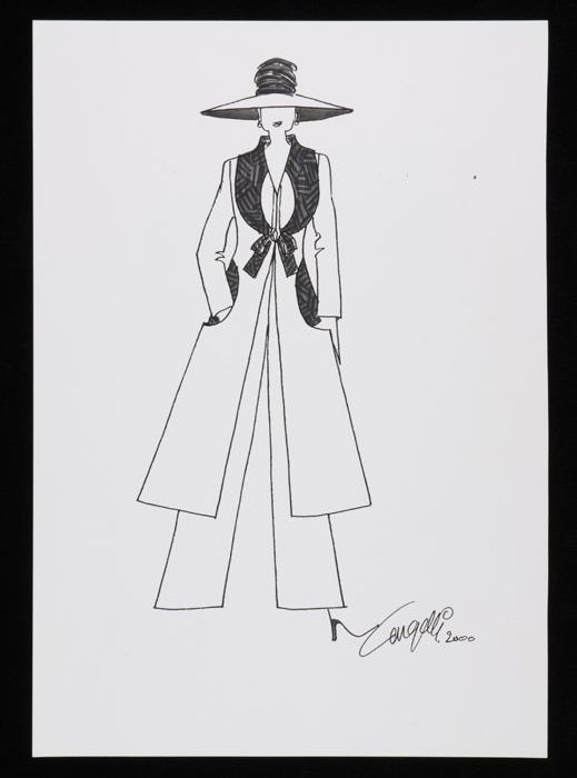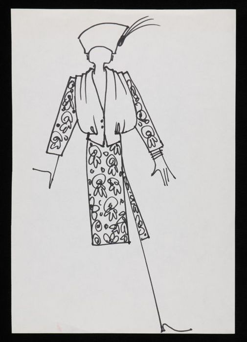 Mode-tekeningen, ontwerptekening in zwarte stift op ...