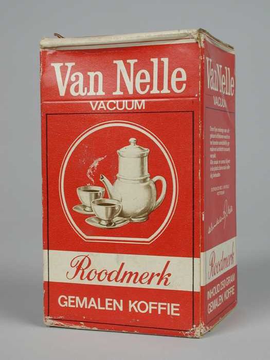Wit en rood, kartonnen pak VAN NELLE ROODMERK KOFFIE...
