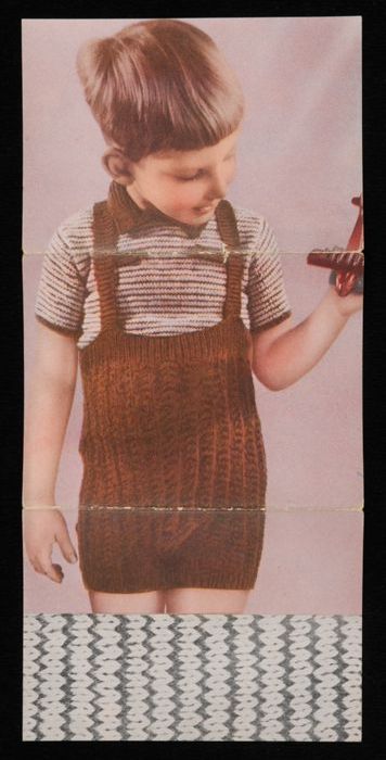 Breipatroon voor een bruin met beige tweedelig pakje...