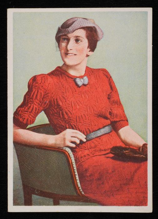 Breipatroon voor een rode damesjapon, bestaand uit r...