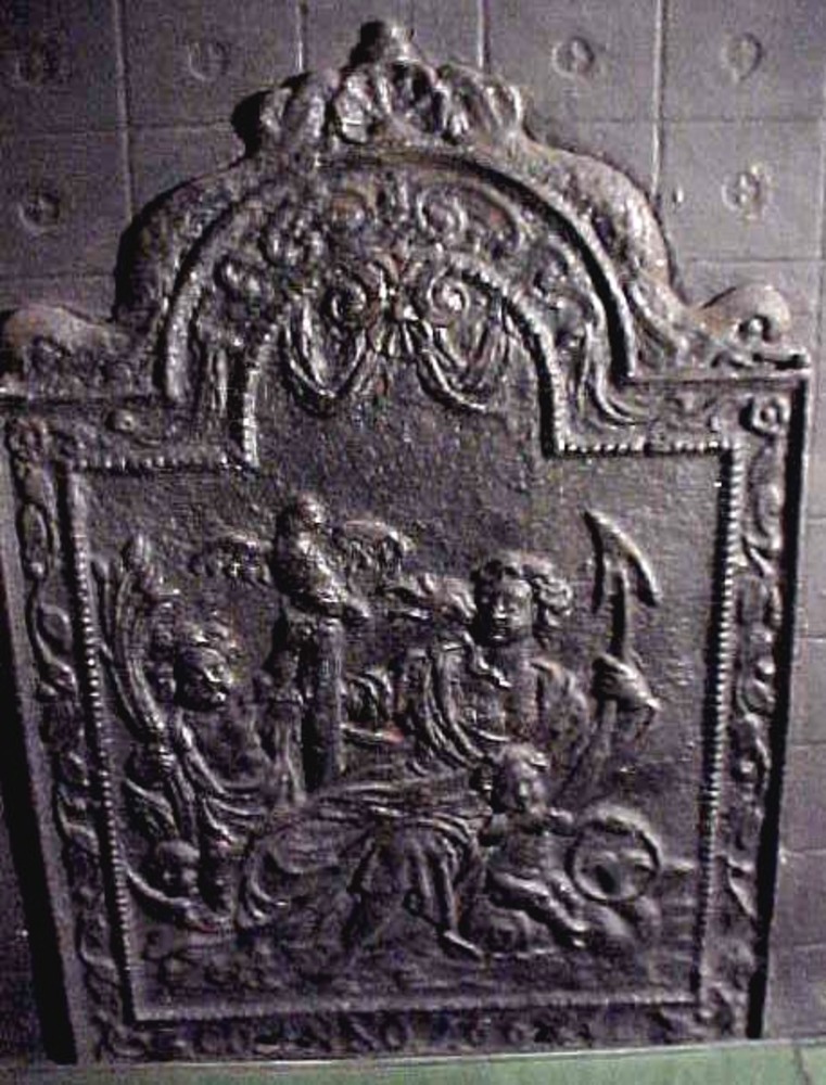 haardplaat van gietijzer, getoogd, met jonge vrouw m...