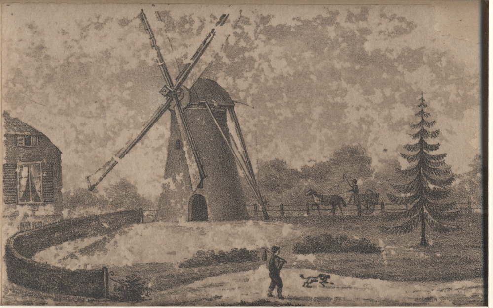 molen te Brakel met een gedeelte van een huis. Litho.