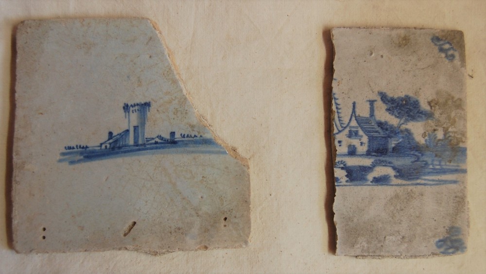 Twee tegels met dorpsgezichten ca. 1675-1725