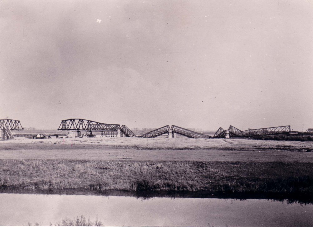 Vernielde bruggen bij Zaltbommel 1940