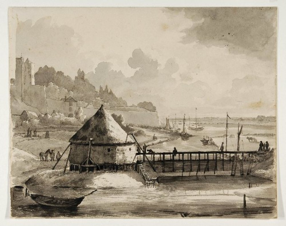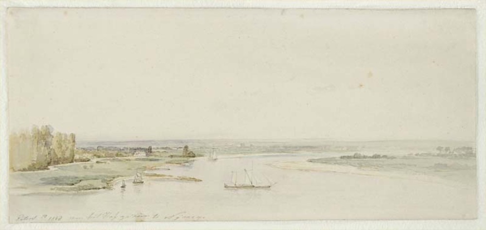 Gezicht vanaf het Valkhof op de Waal naar het oosten