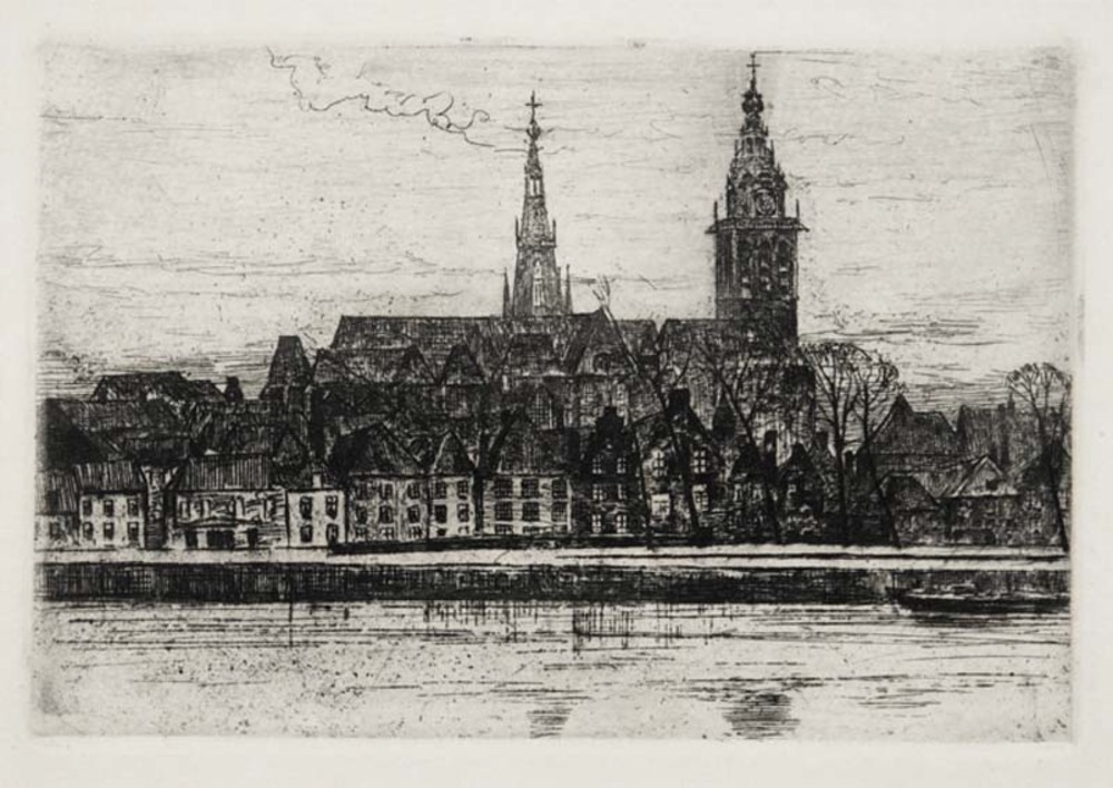 Gezicht op een gedeelte van Nijmegen vanuit het noorden