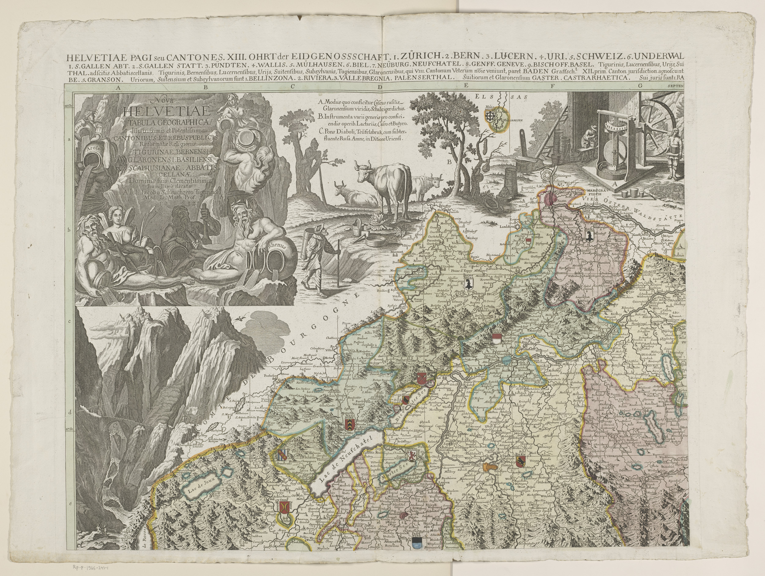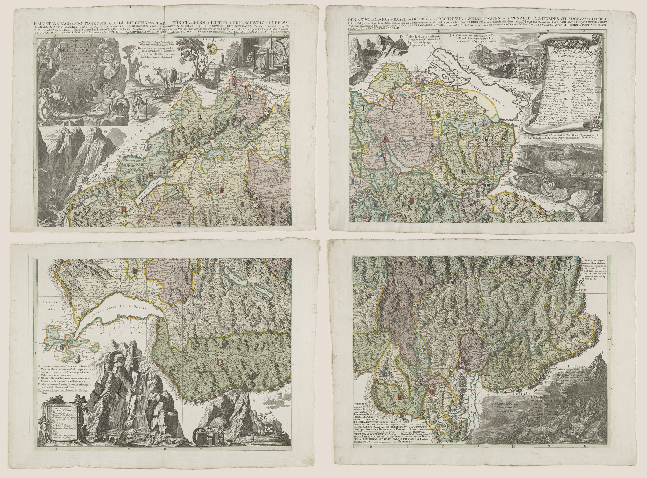 Vierdelige kaart van Zwitserland
