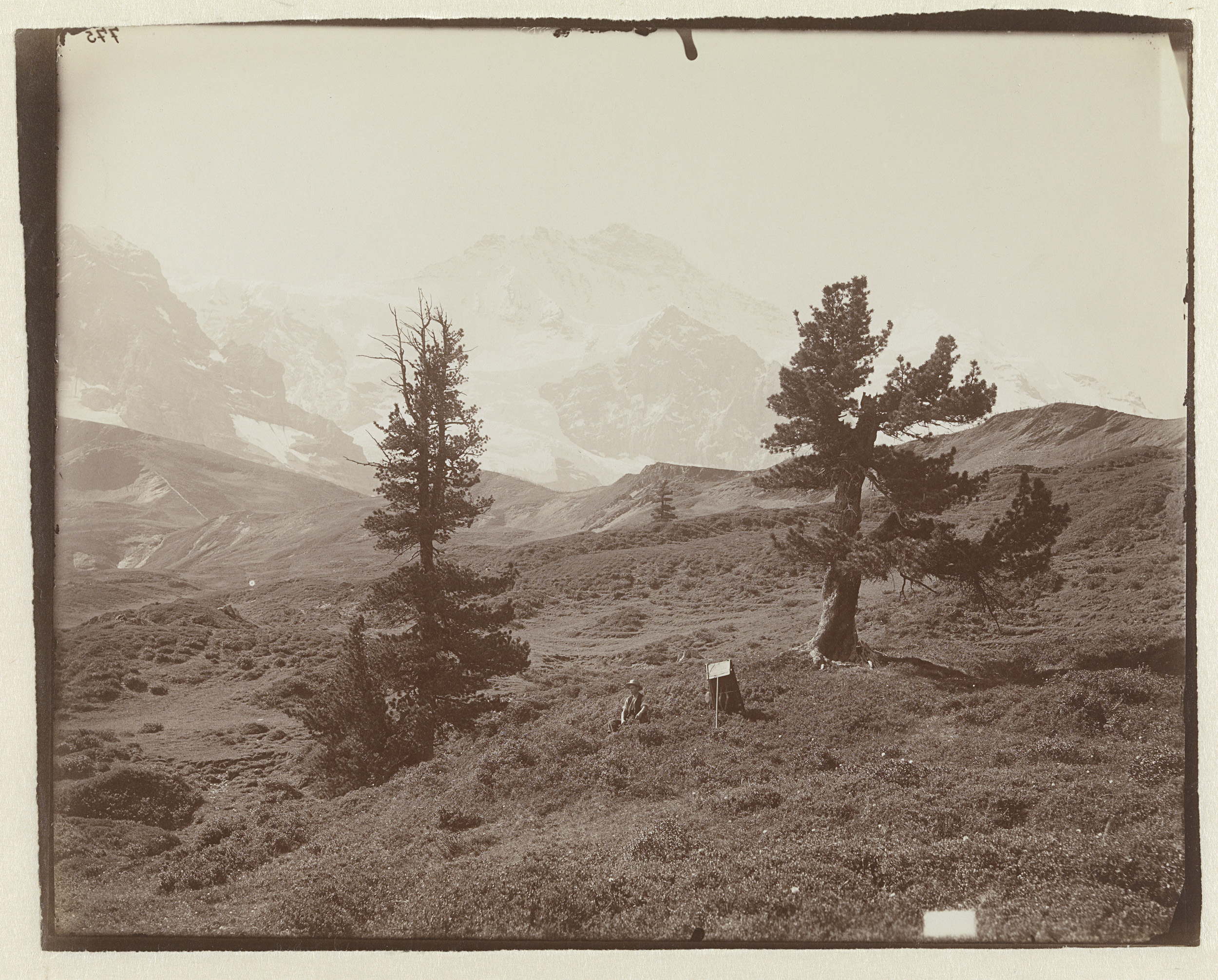 Onbekende man in weide in berglandschap