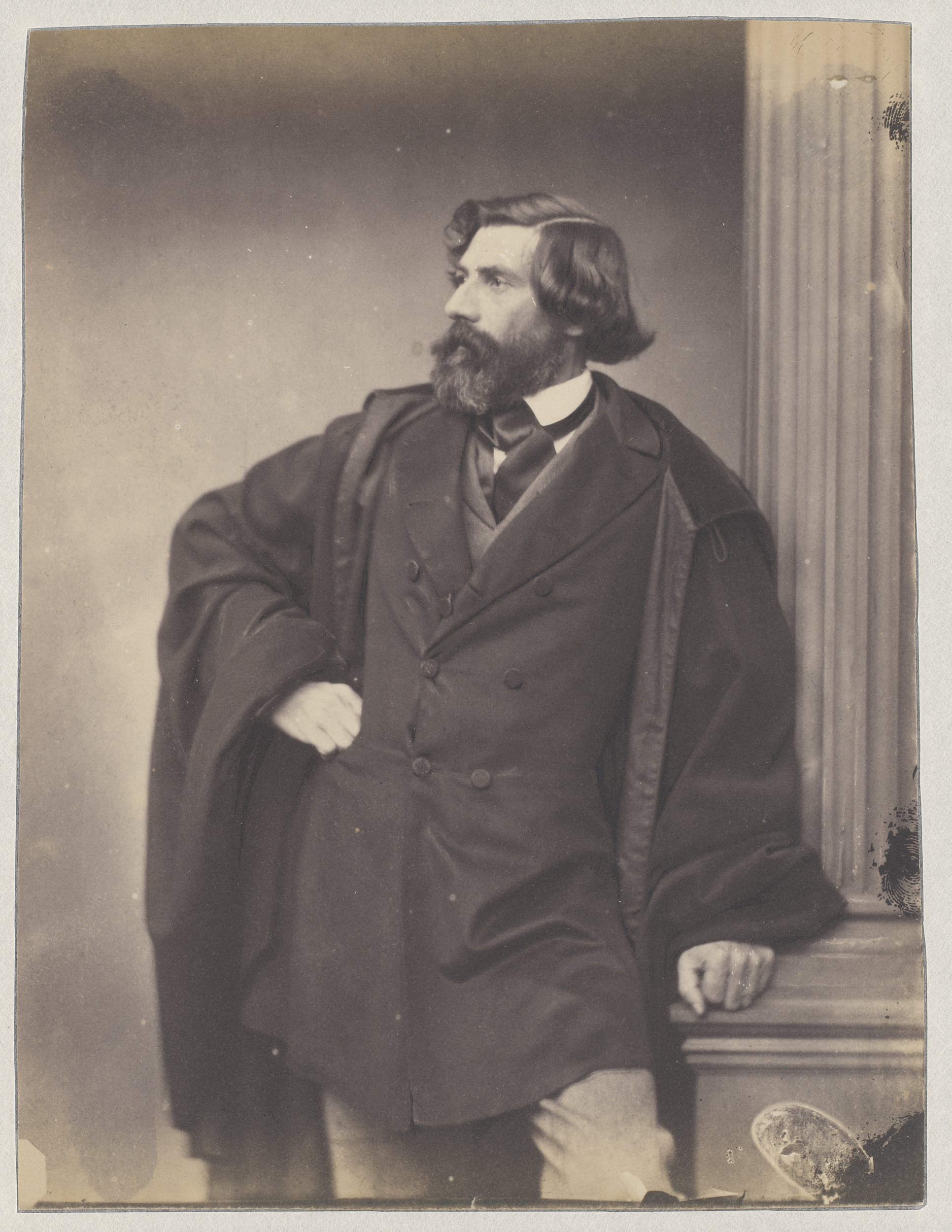 Portret van Ludwig Lange, staand en leunend op een zuil