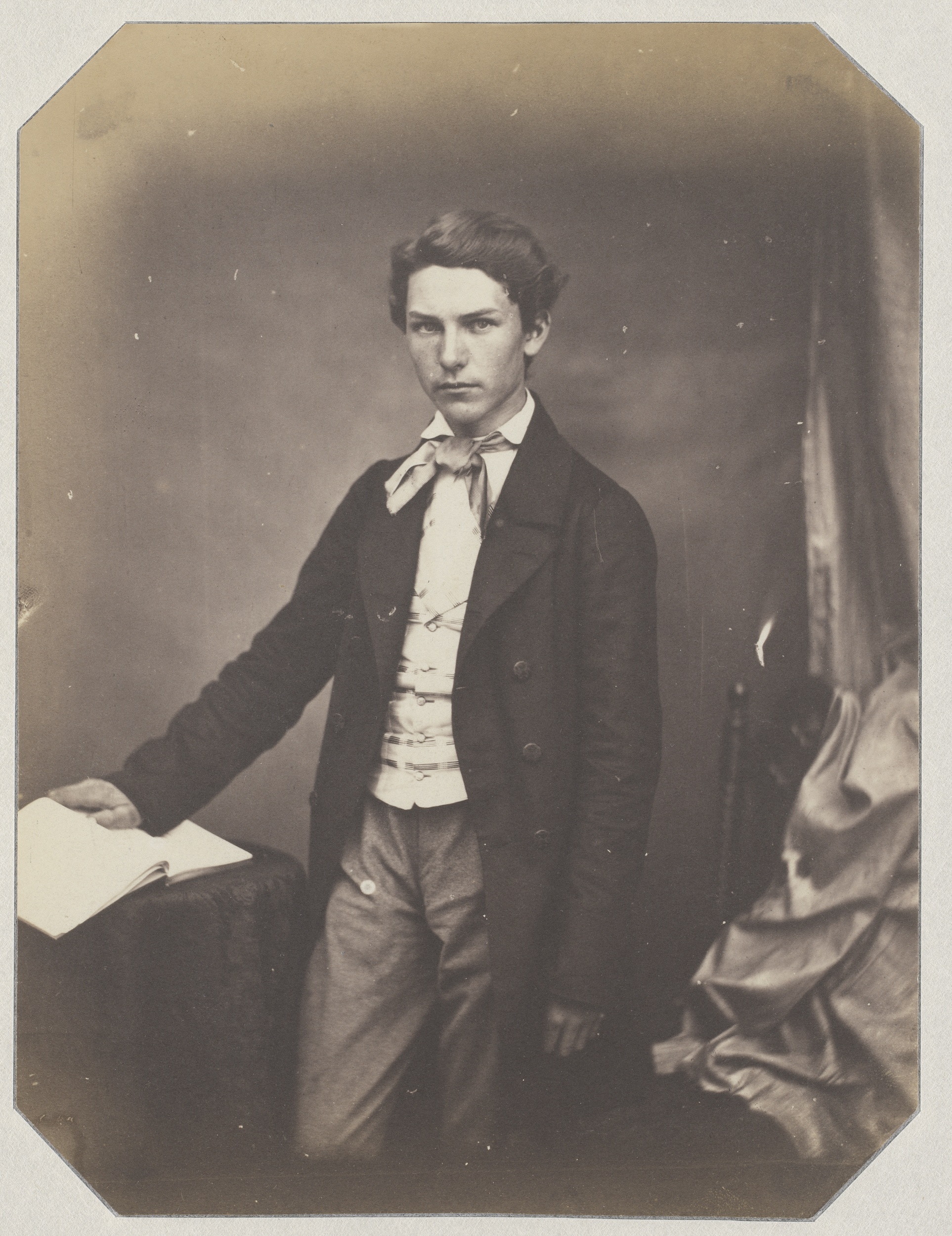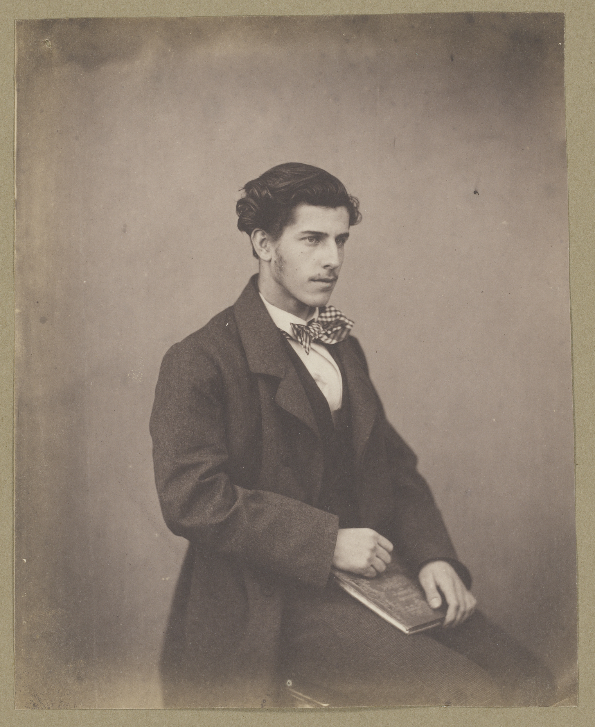 Portret van onbekende gezeten jonge man met geruite ...