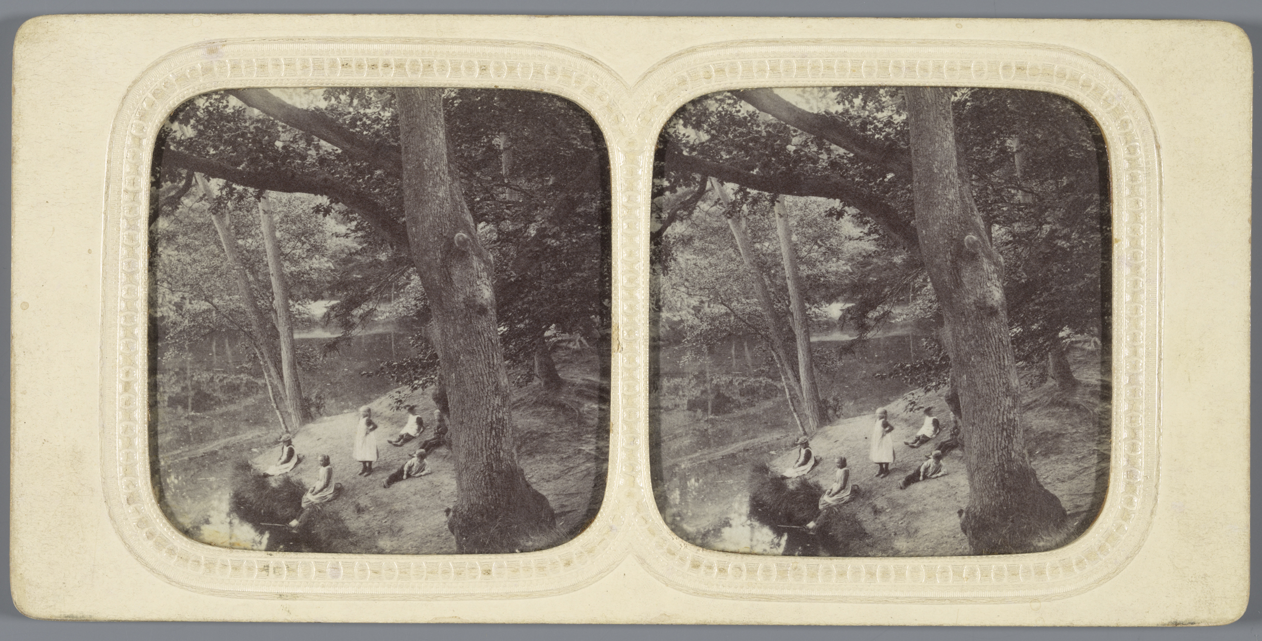 Kinderen bij vijver in het bos