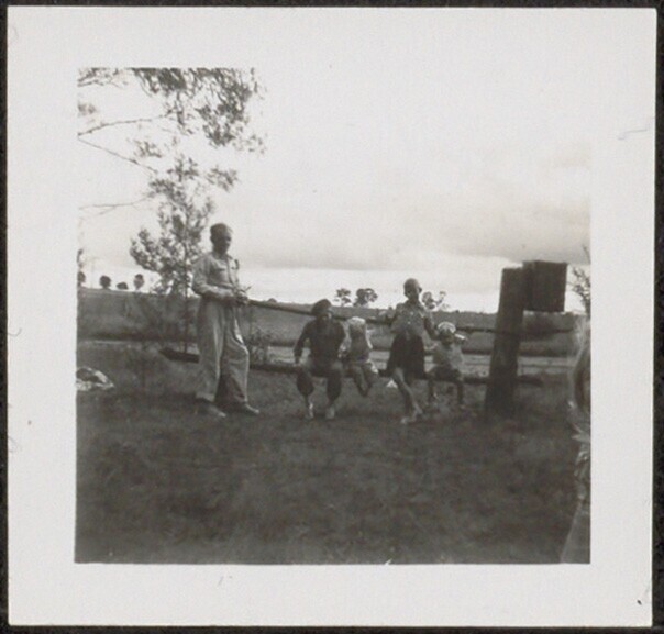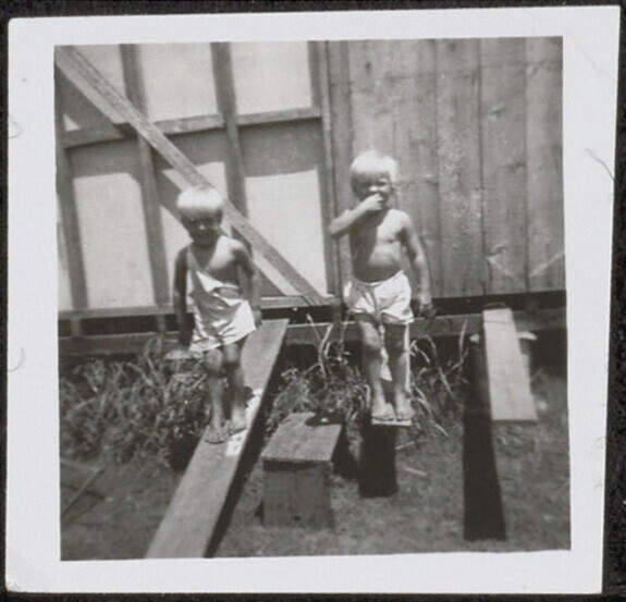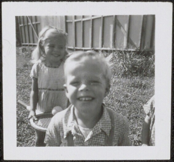 Familie Altman, de kinderen Conny en Fred op een zel...