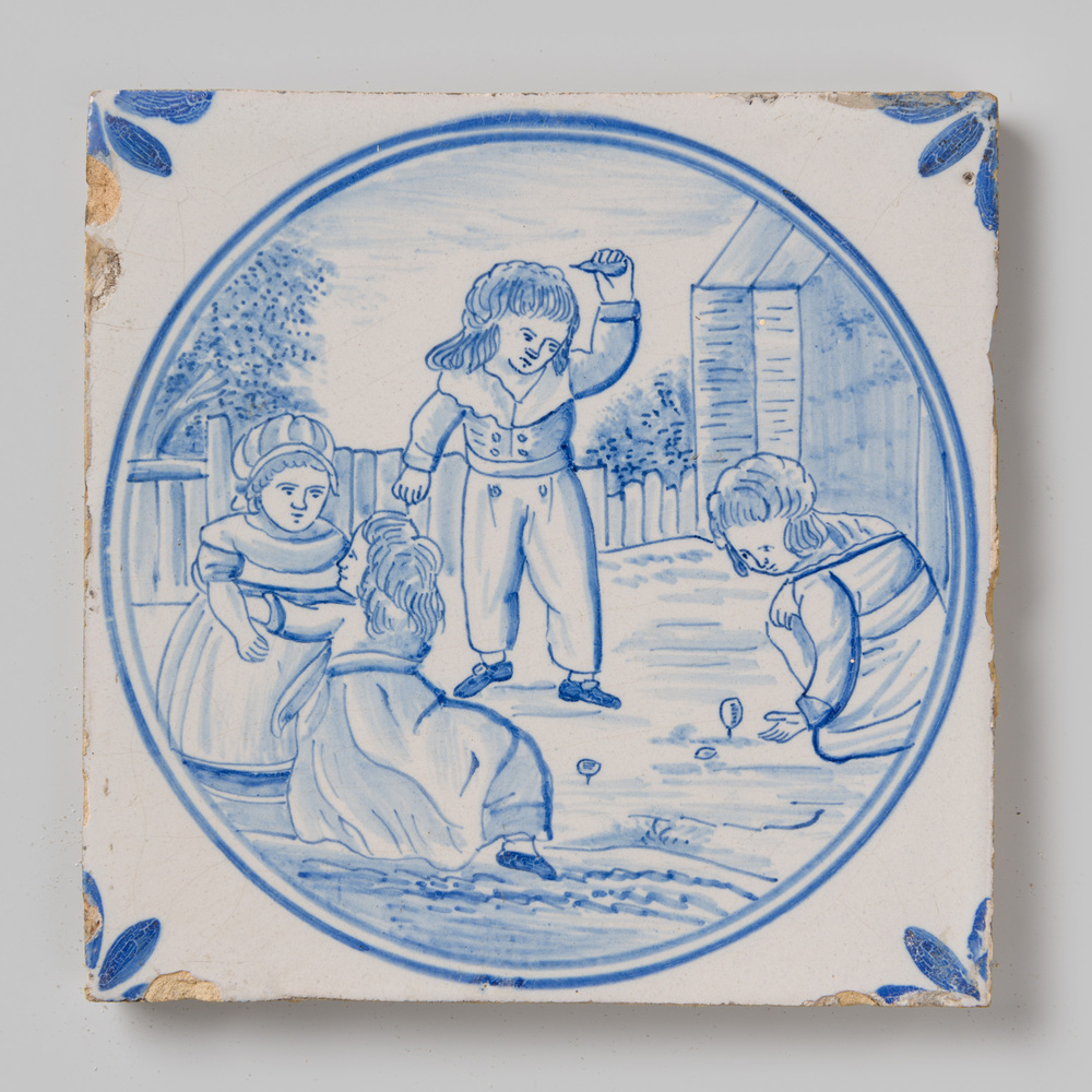 tegel van aardewerk met tinglazuur, voorstellende he...
