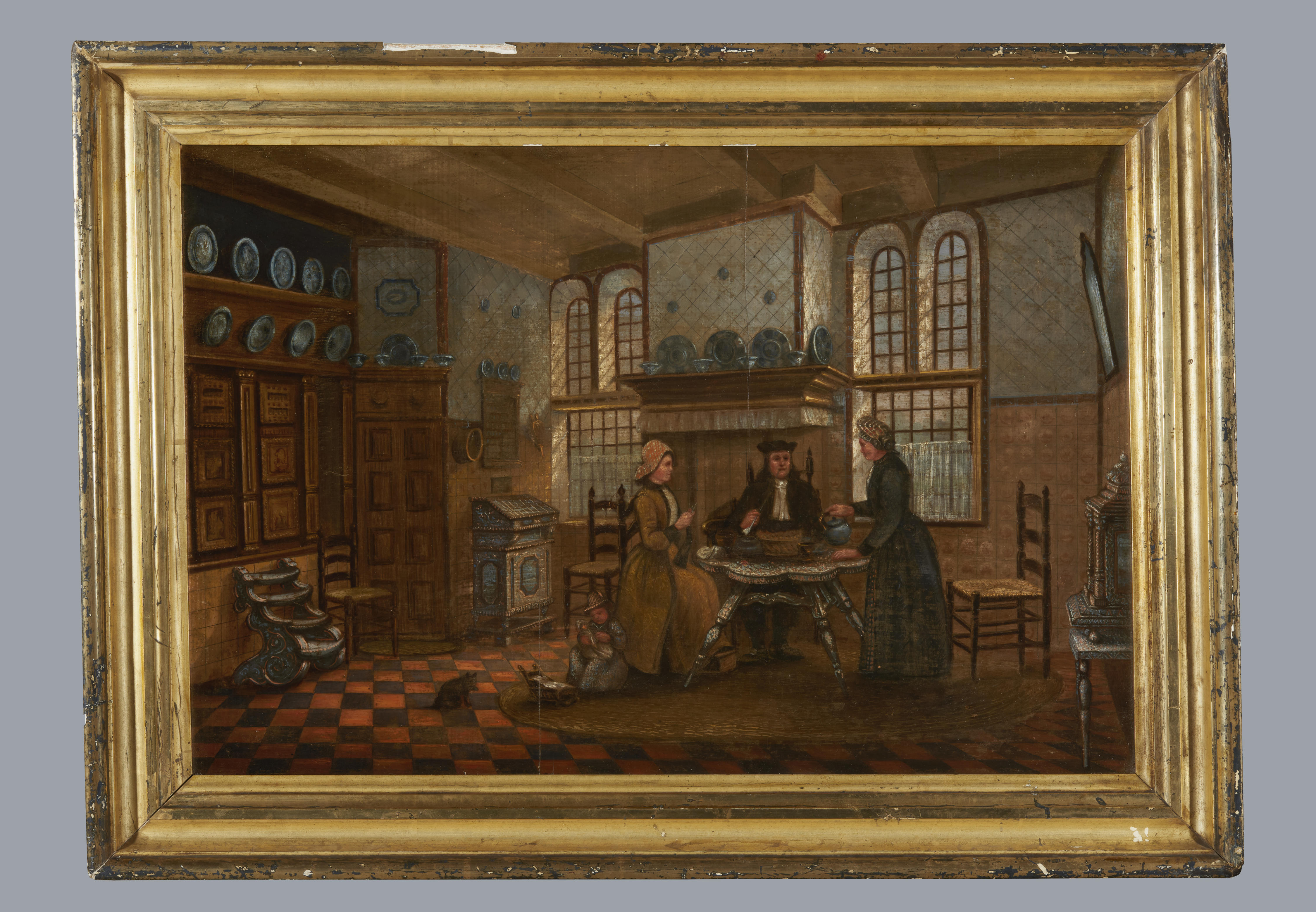 Twee vrouwen en een man in Noord-Hollands interieur,...