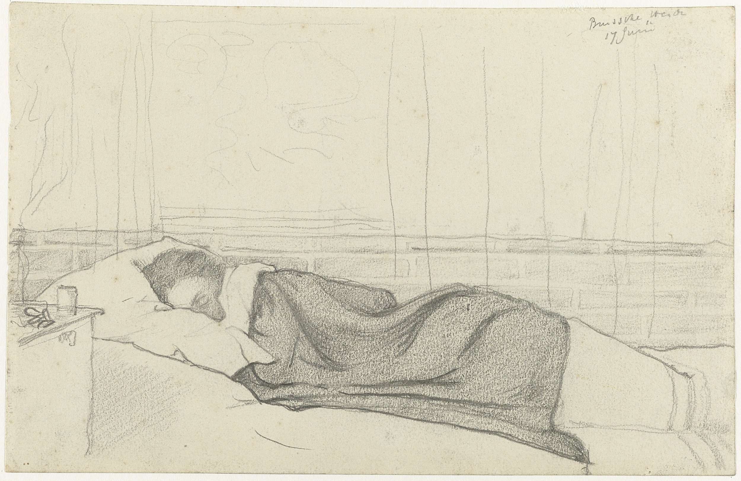 Vrouw van Richard Roland Holst in bed, naar rechts