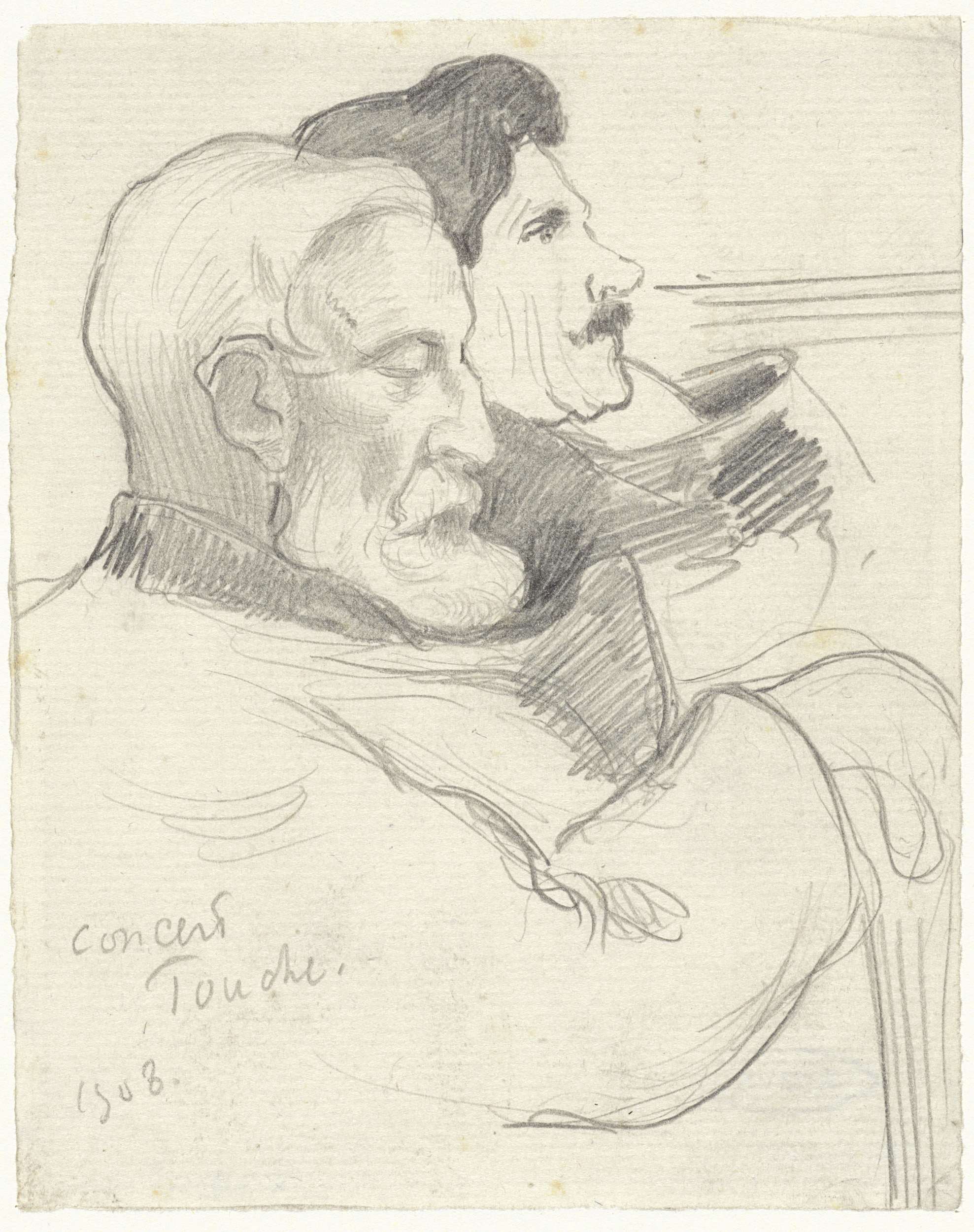Twee concertbezoekers in de muziekzaal Touche, te Pa...
