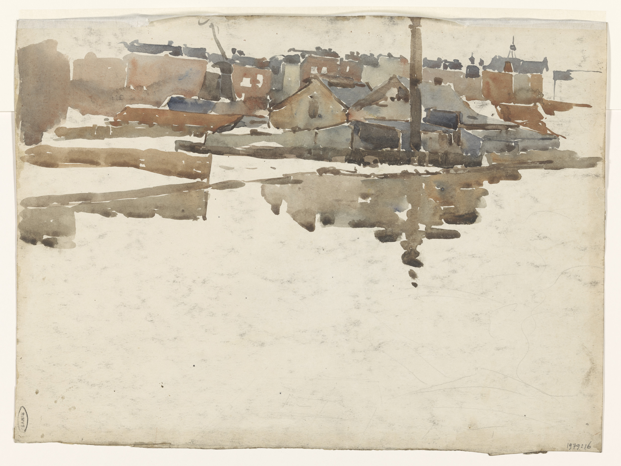 Gezicht op de achterkant van huizen, met kleurnotities
