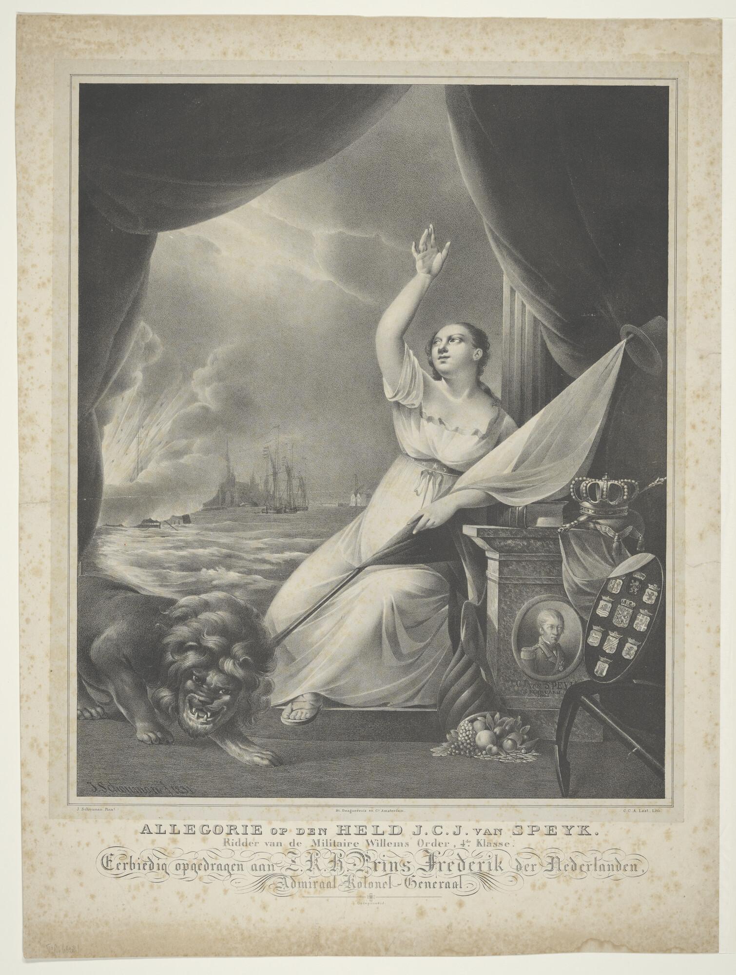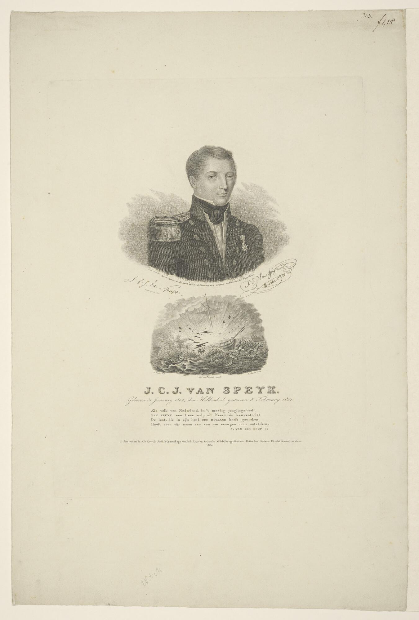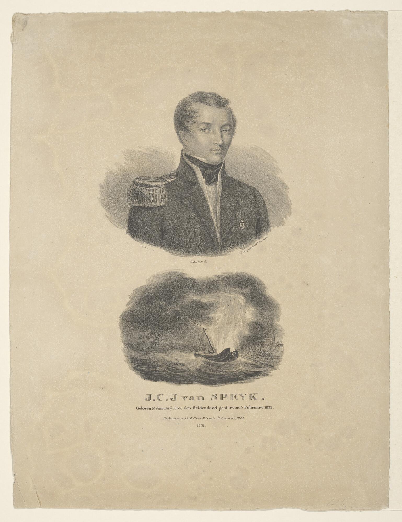 Portret van J.C.J. van Speyk, met daaronder het spri...