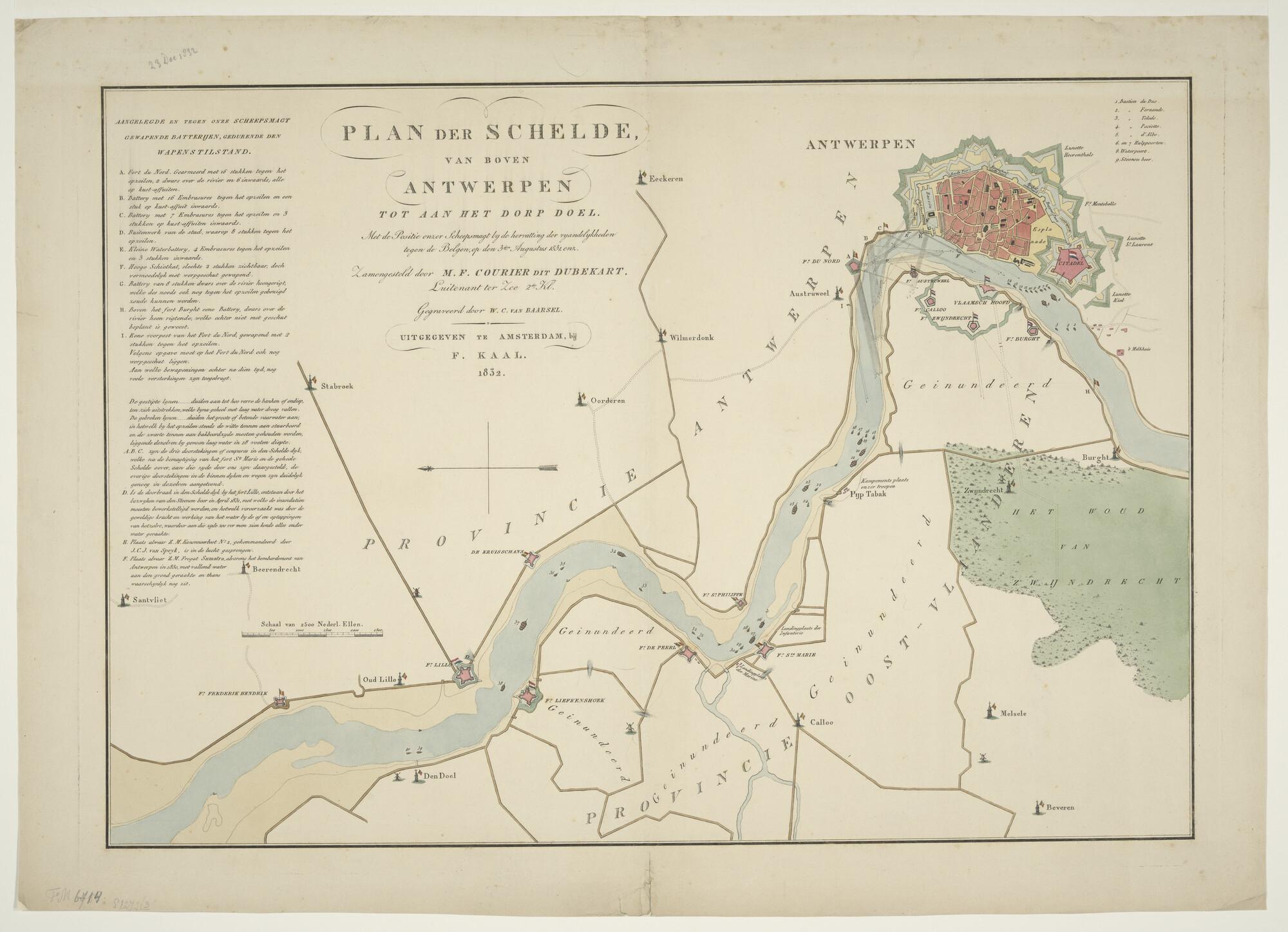 Kaart van de Schelde vanaf Antwerpen tot het dorp Doel