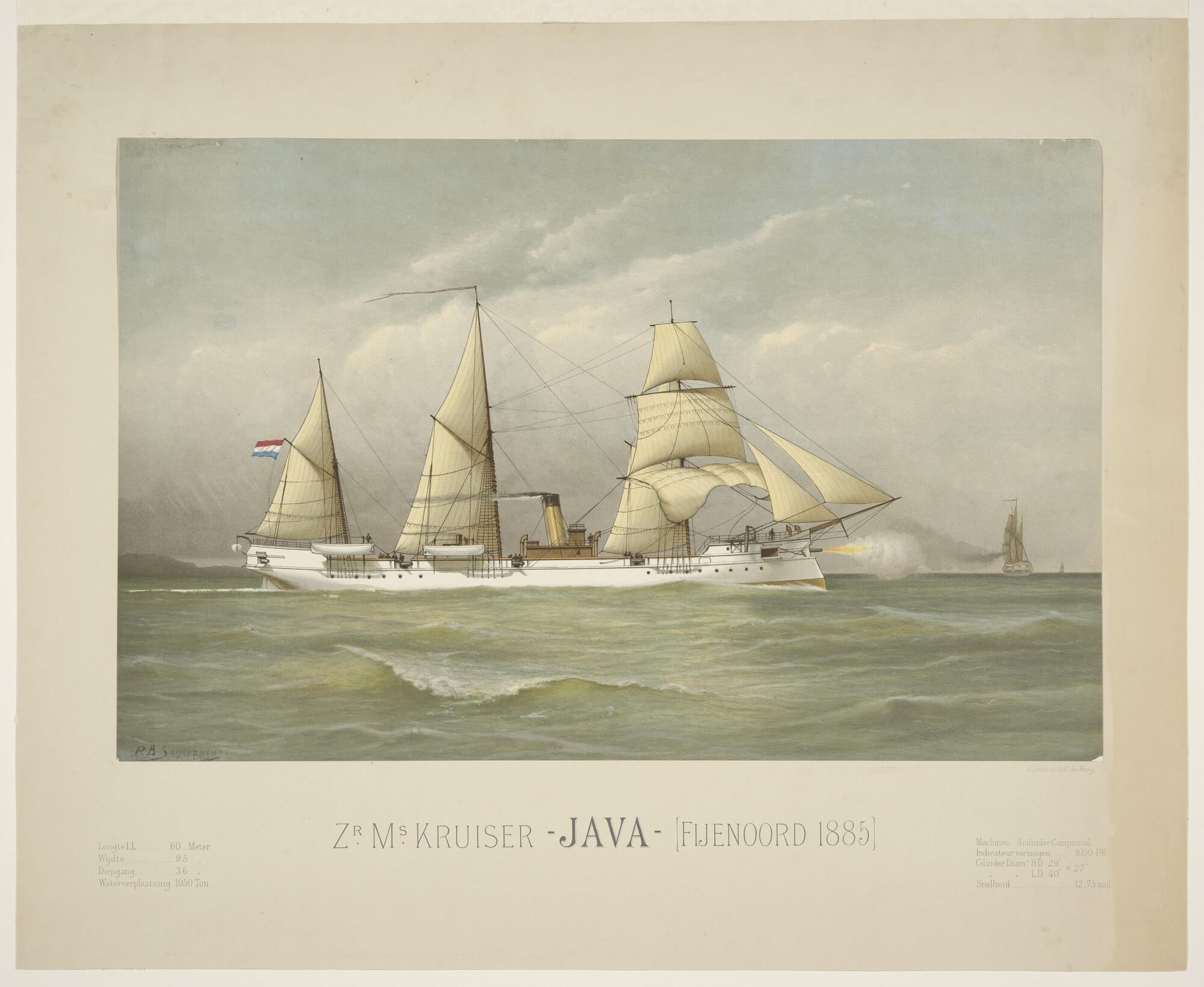 Het flottieljevaartuig Zr.Ms. 'Java', gebouwd bij Ma...