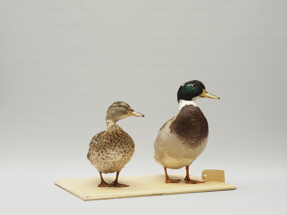 Wilde eend; gedeeltelijk wit; met wilde eend vrouwtj...