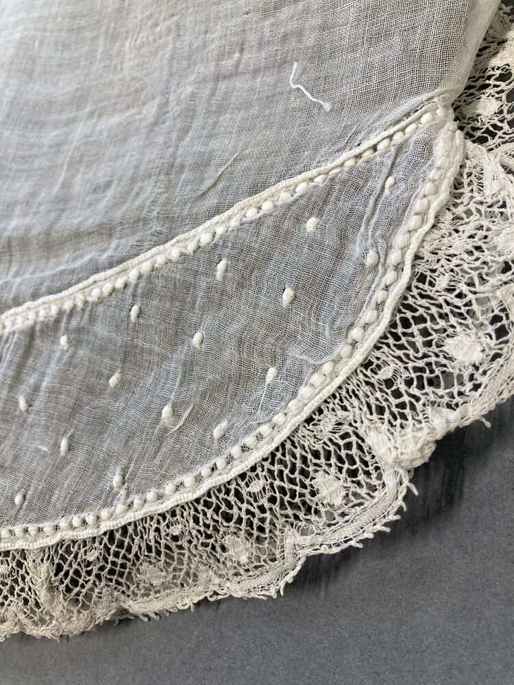Fichu, witte tule versierd met nopjes en rand met lo...