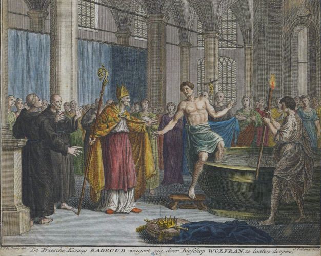 Friese Koning Radboud weigert doop door Bischop Wolf...