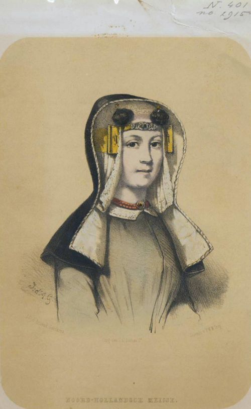 Een vrouw en twee kinderen in klederdracht uit Assen...