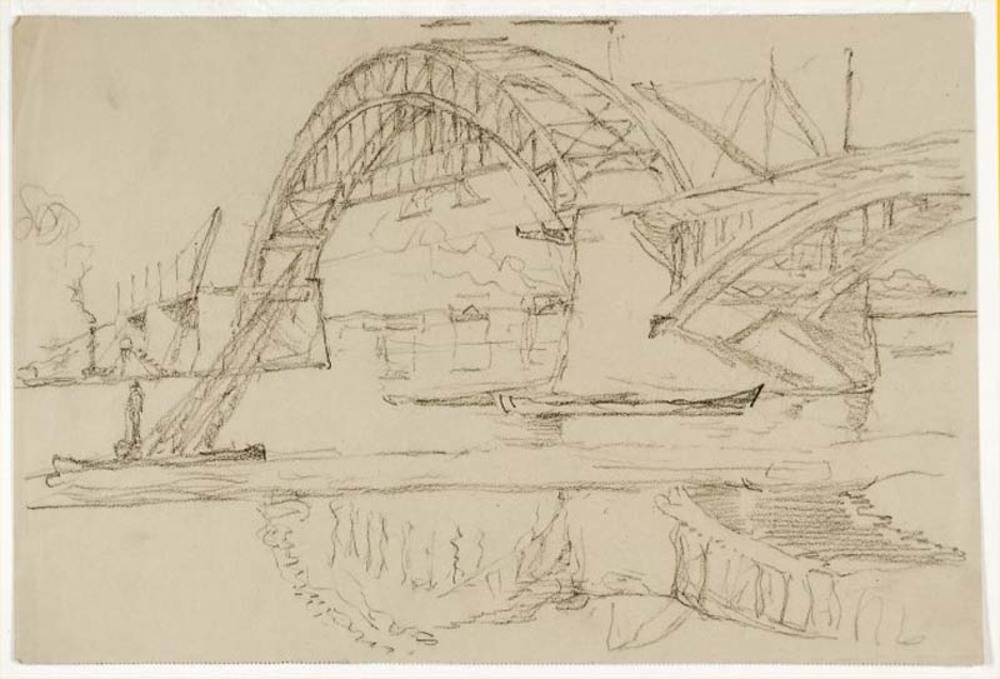De scheepswerf in de Ooij met op de achtergrond de B...