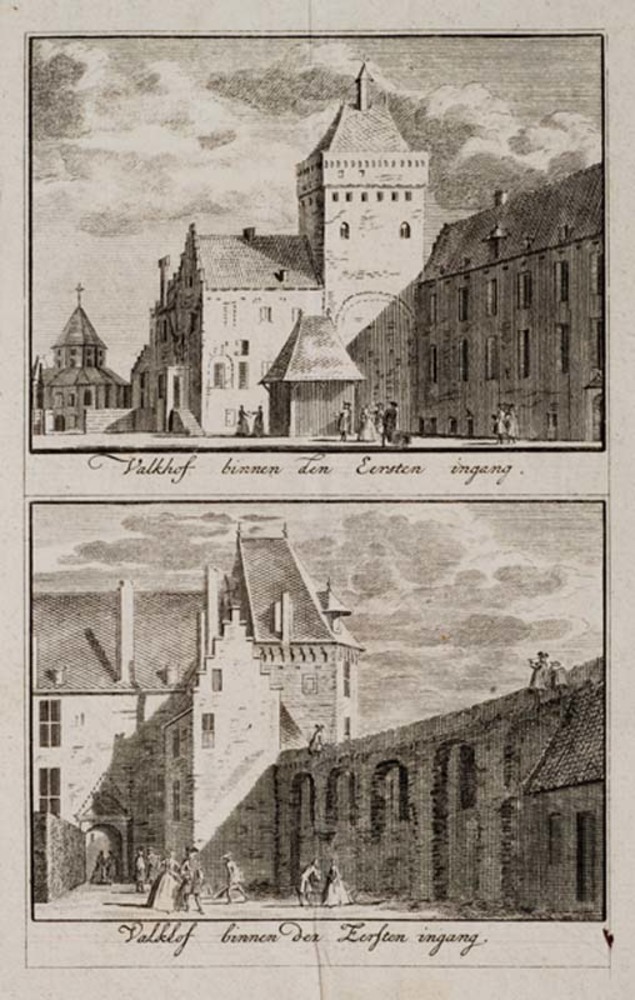 Twee afbeeldingen van de eerste binnenplaats van het...
