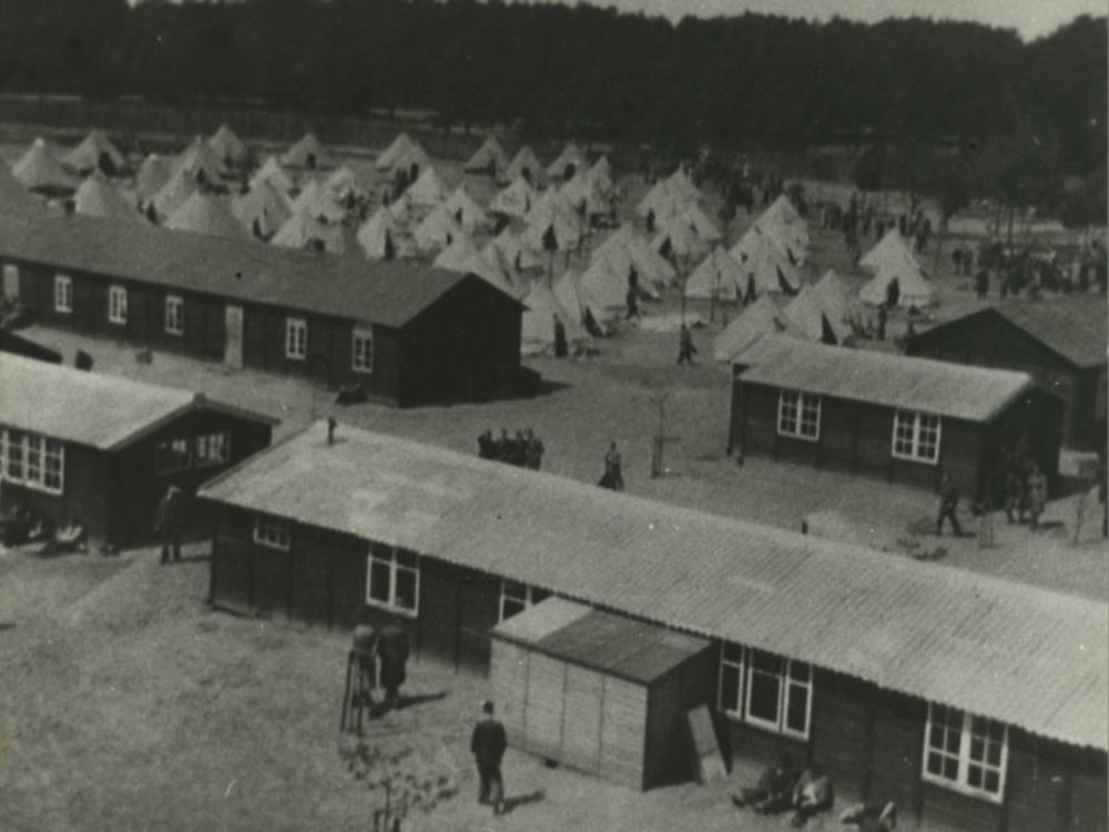 Foto kamp met barakken en tenten. Tekst achterop: "K...
