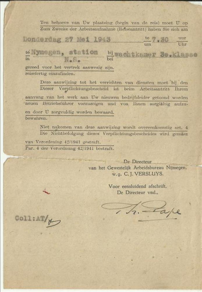 Reden van dienstverplichting: vordering 25 mei 1943 ...