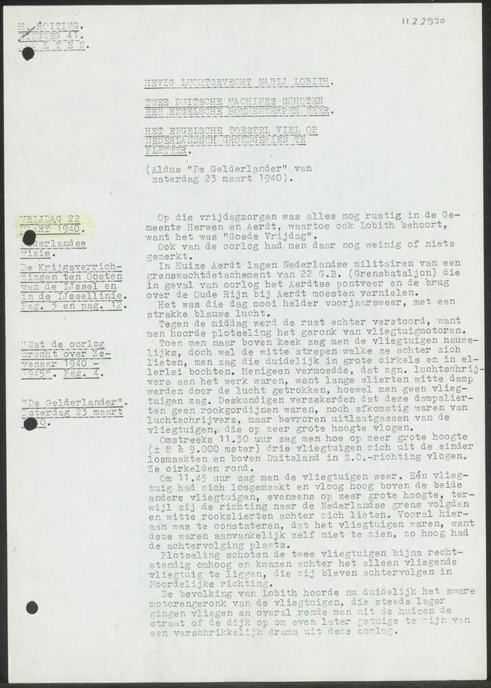 Gegevens n.a.v. neerstorten Spitfire bij Düffelward