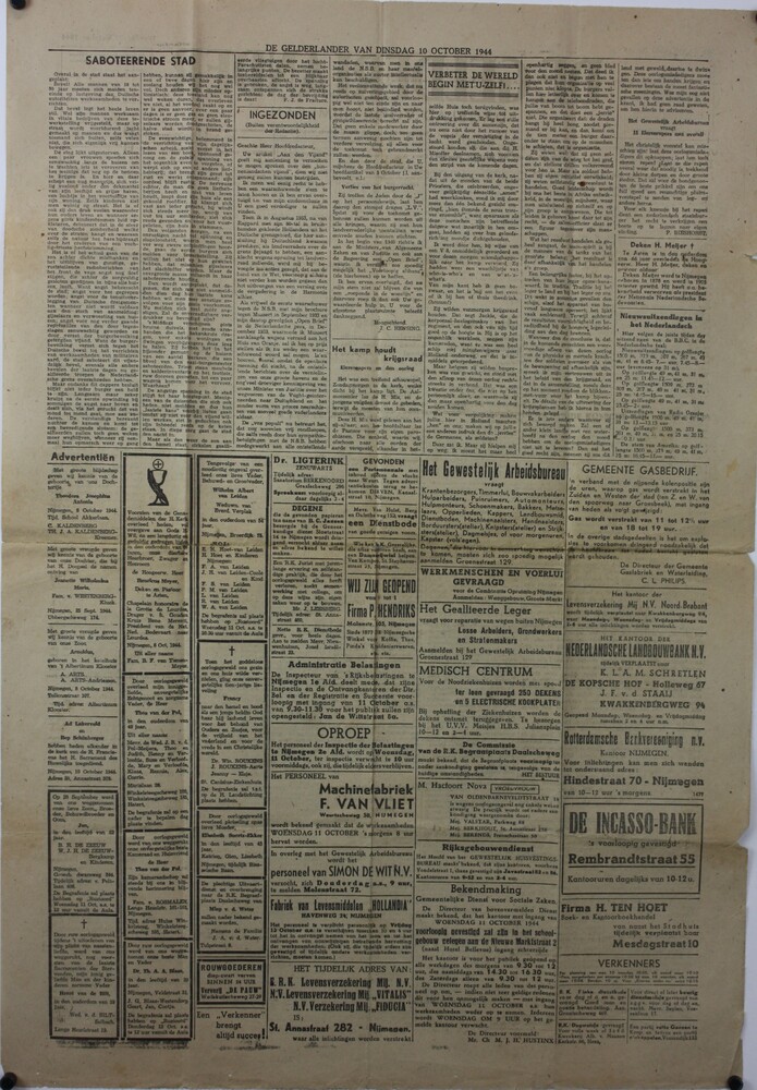 De Gelderlander oktober t/m december 1944