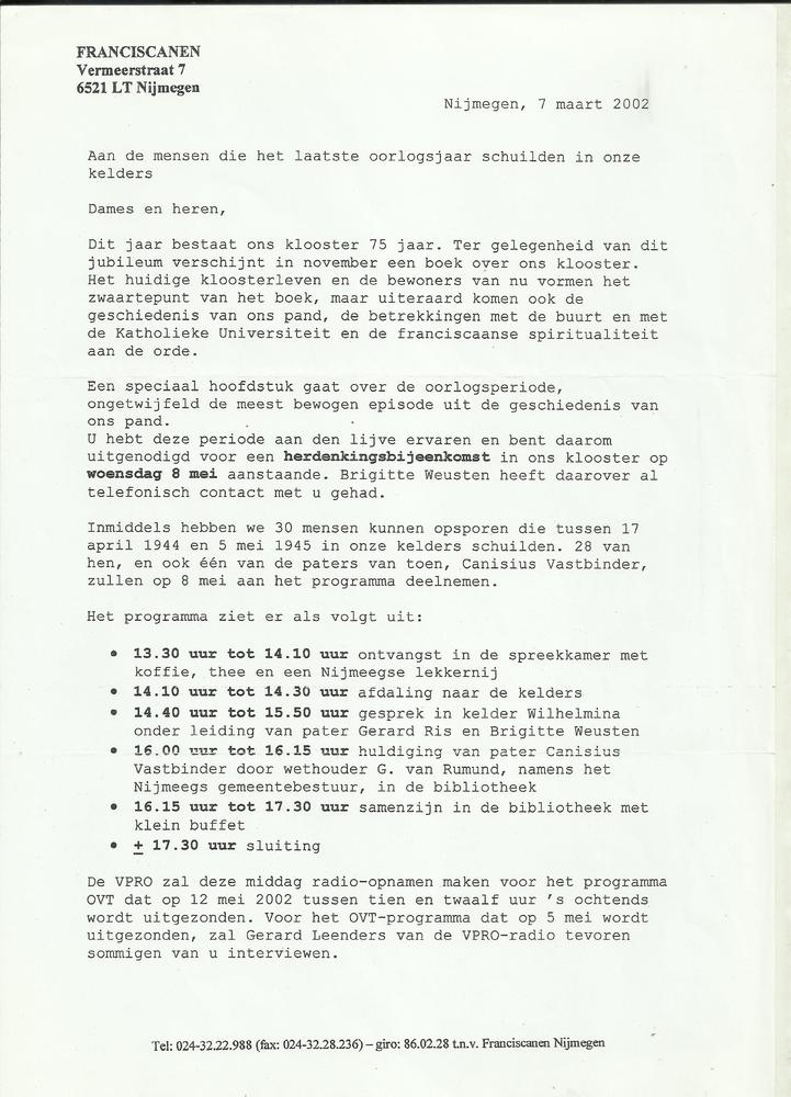 Brief van de Franciscanen te Nijmegen