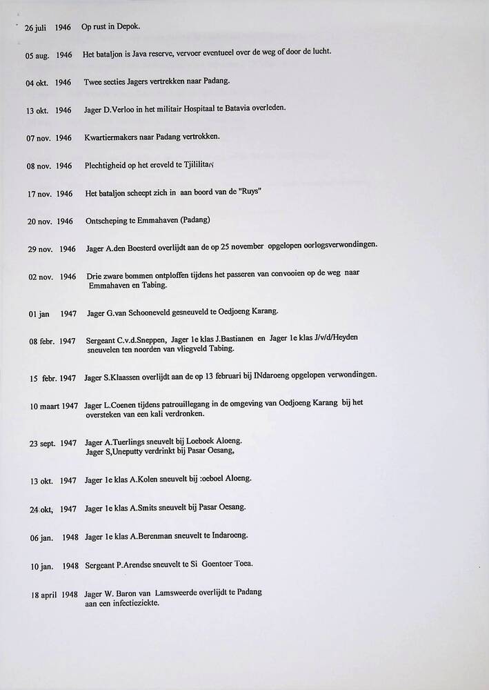 Lijst met chronologie 1ste bataljon Jagers 1945 - 1948