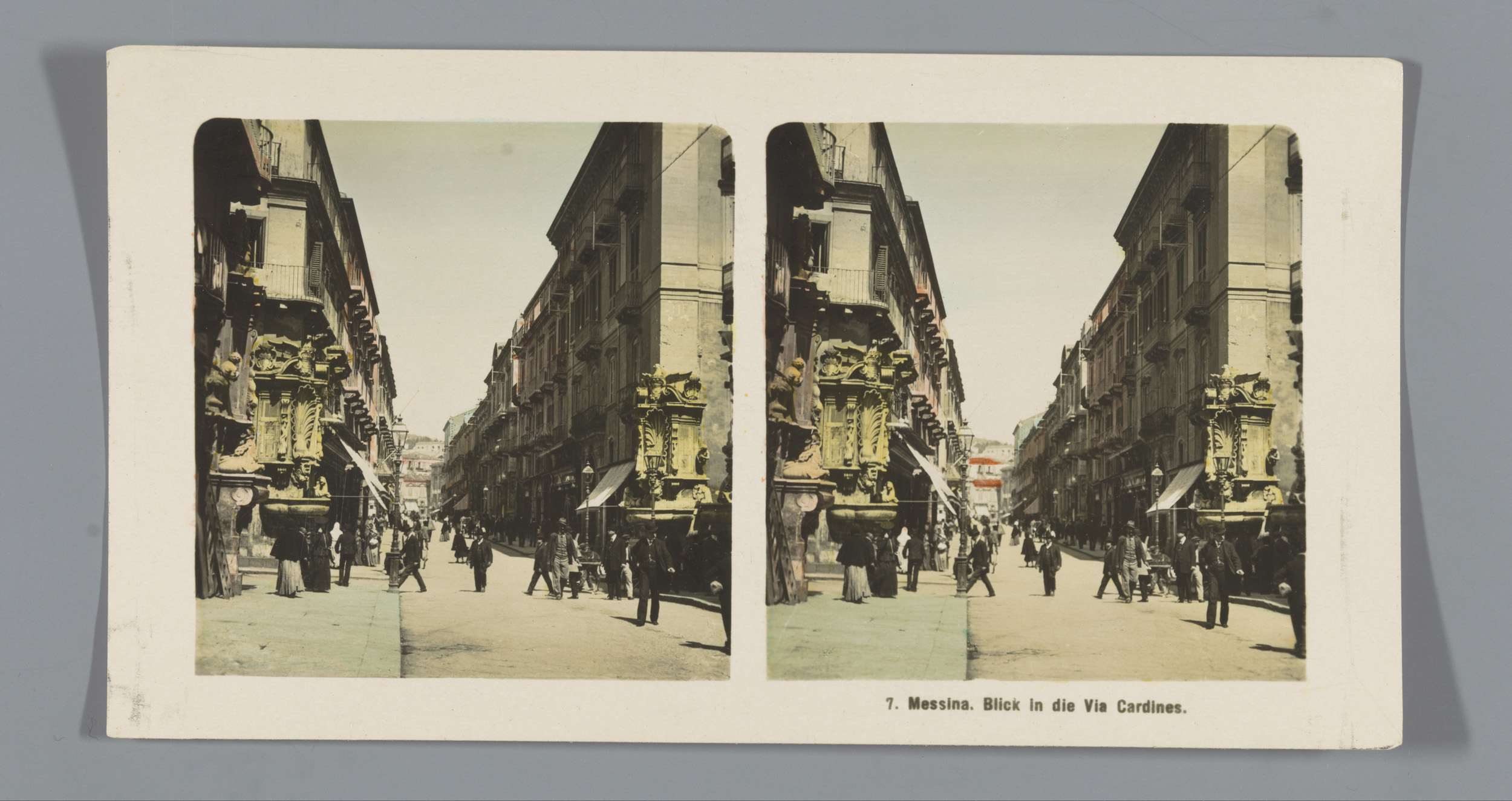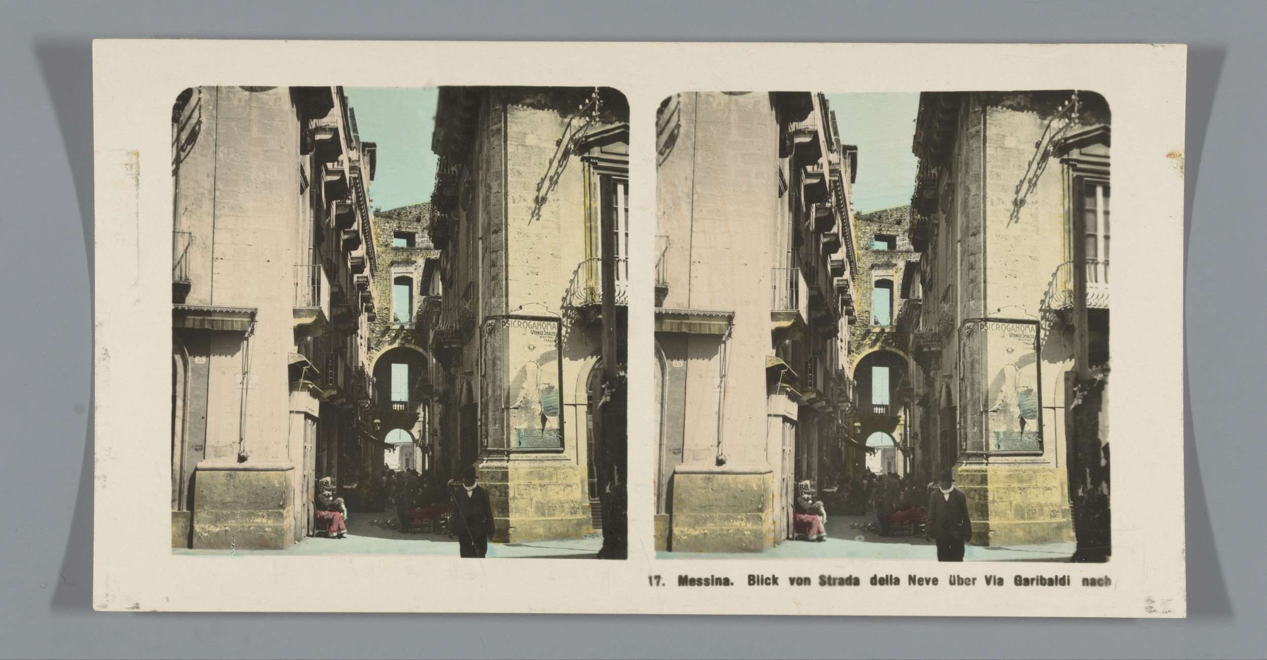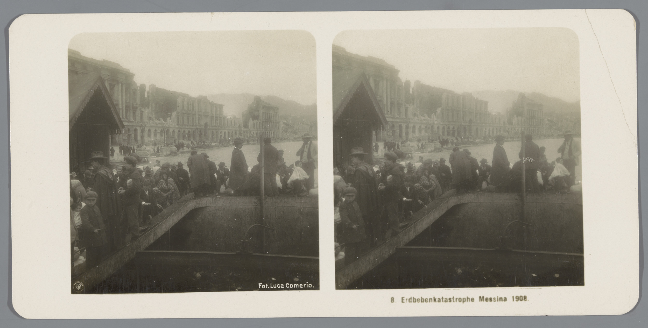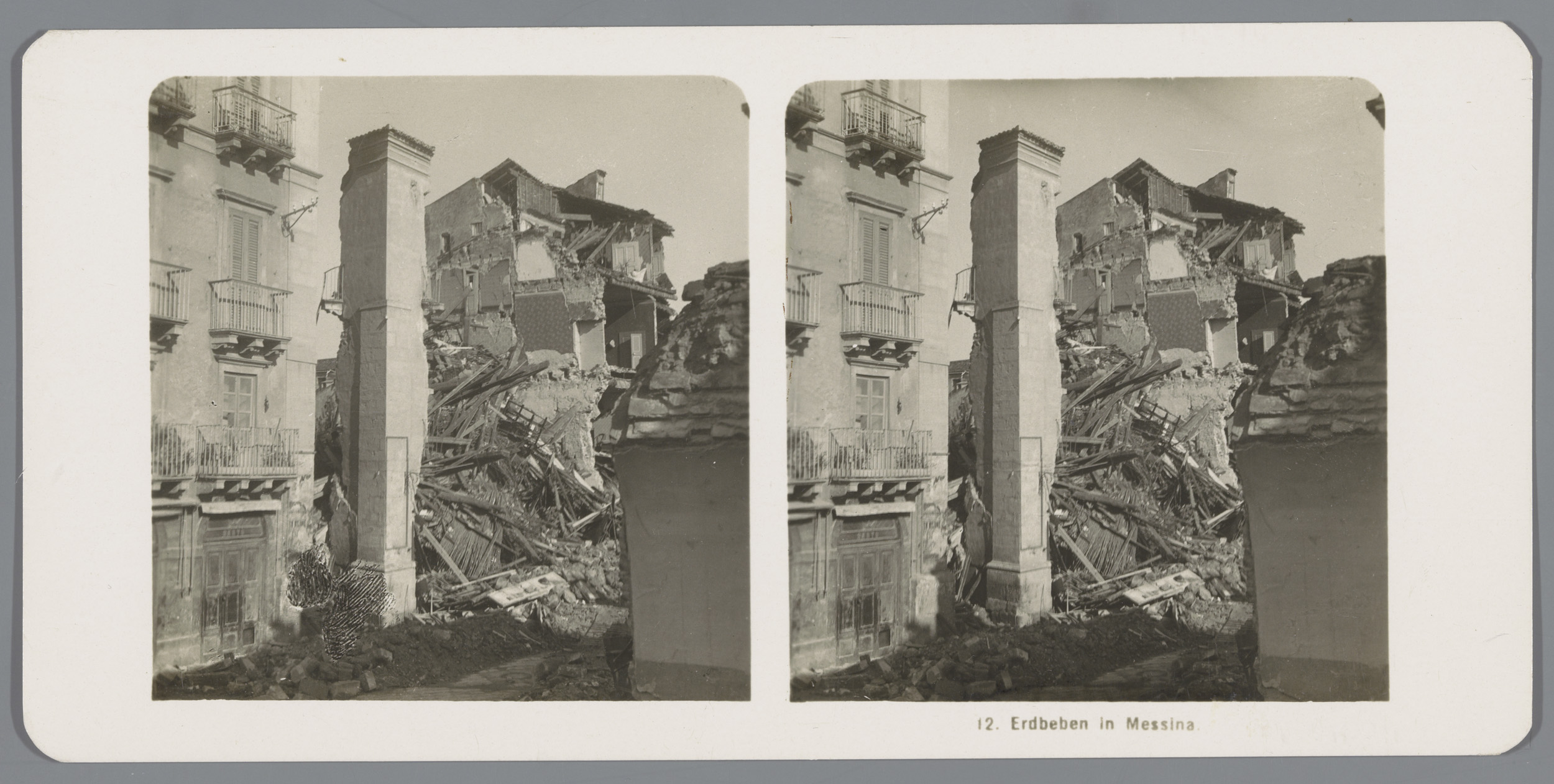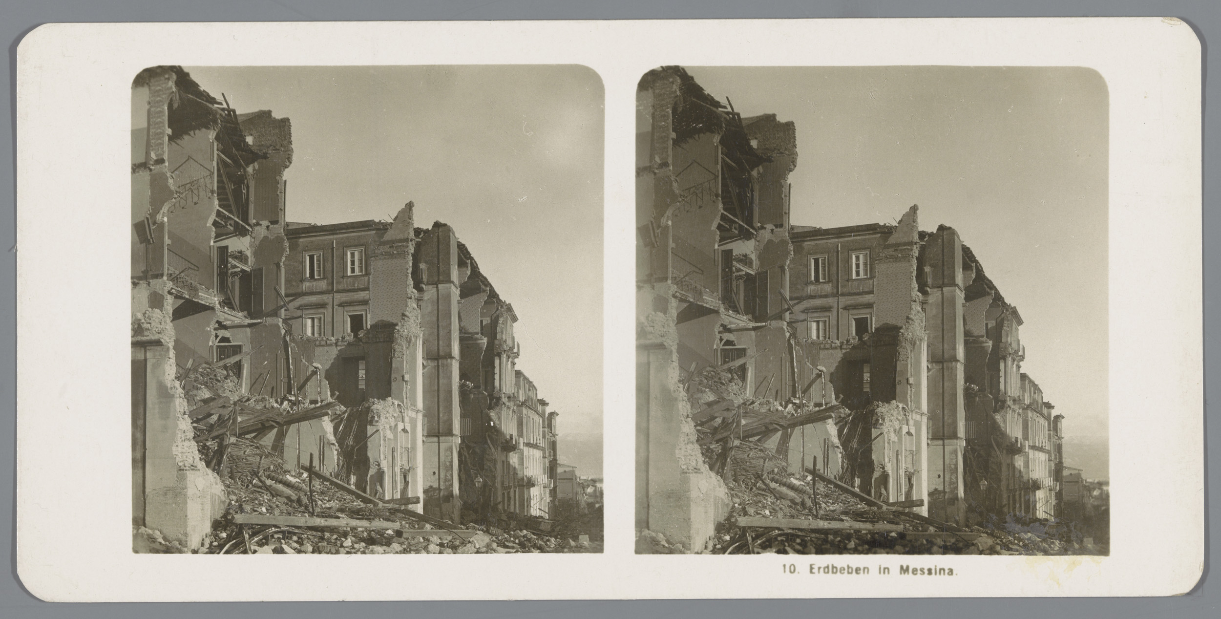 Door een aardbeving verwoeste gebouwen te Messina, m...