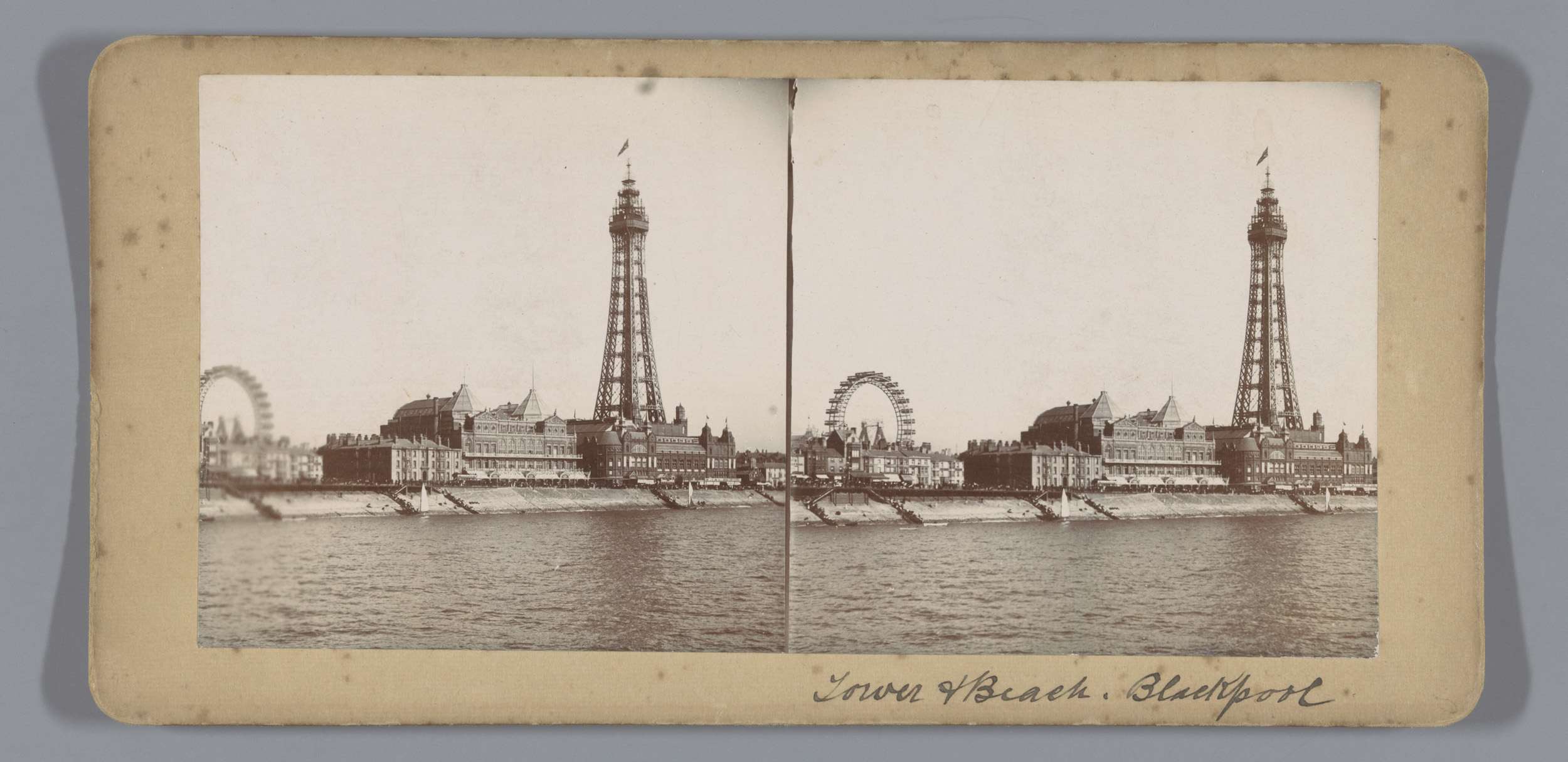 Gezicht op de kust van Blackpool, met zicht op de Bl...