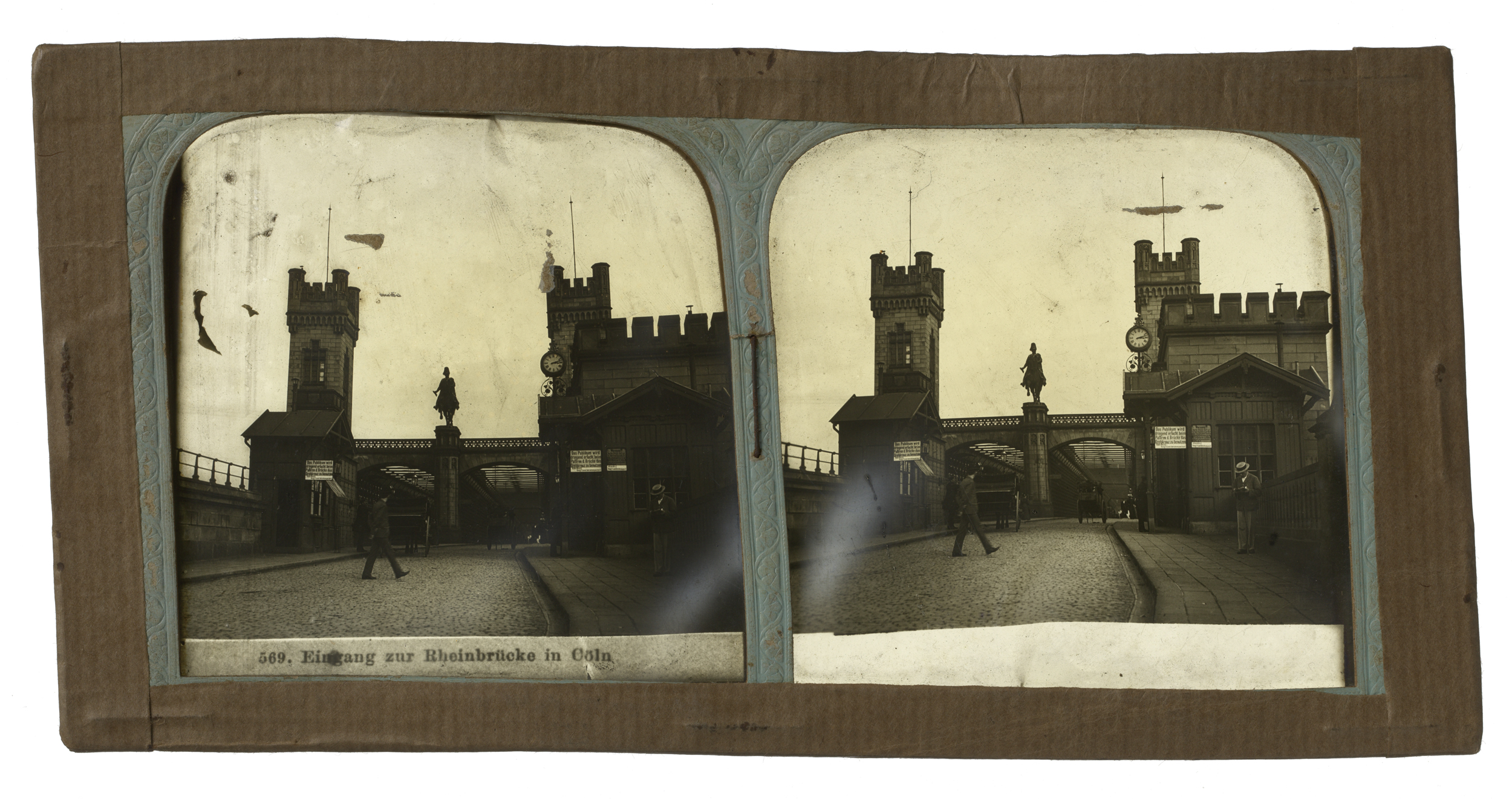 Gezicht op de Hohenzollernbrücke over de Rijn in Keulen