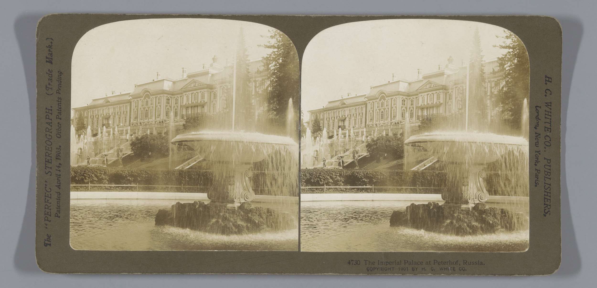 Gezicht op de façade van het Grote Paleis van Peterhof