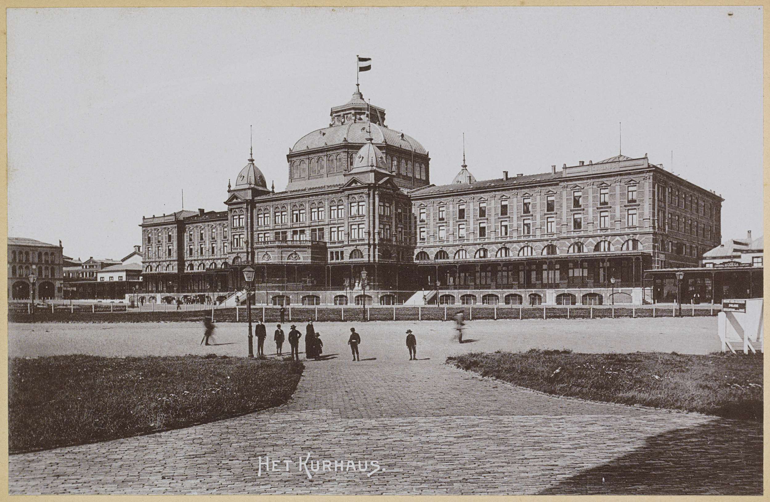 Gezicht op het Kurhaus in Scheveningen met op de voo...