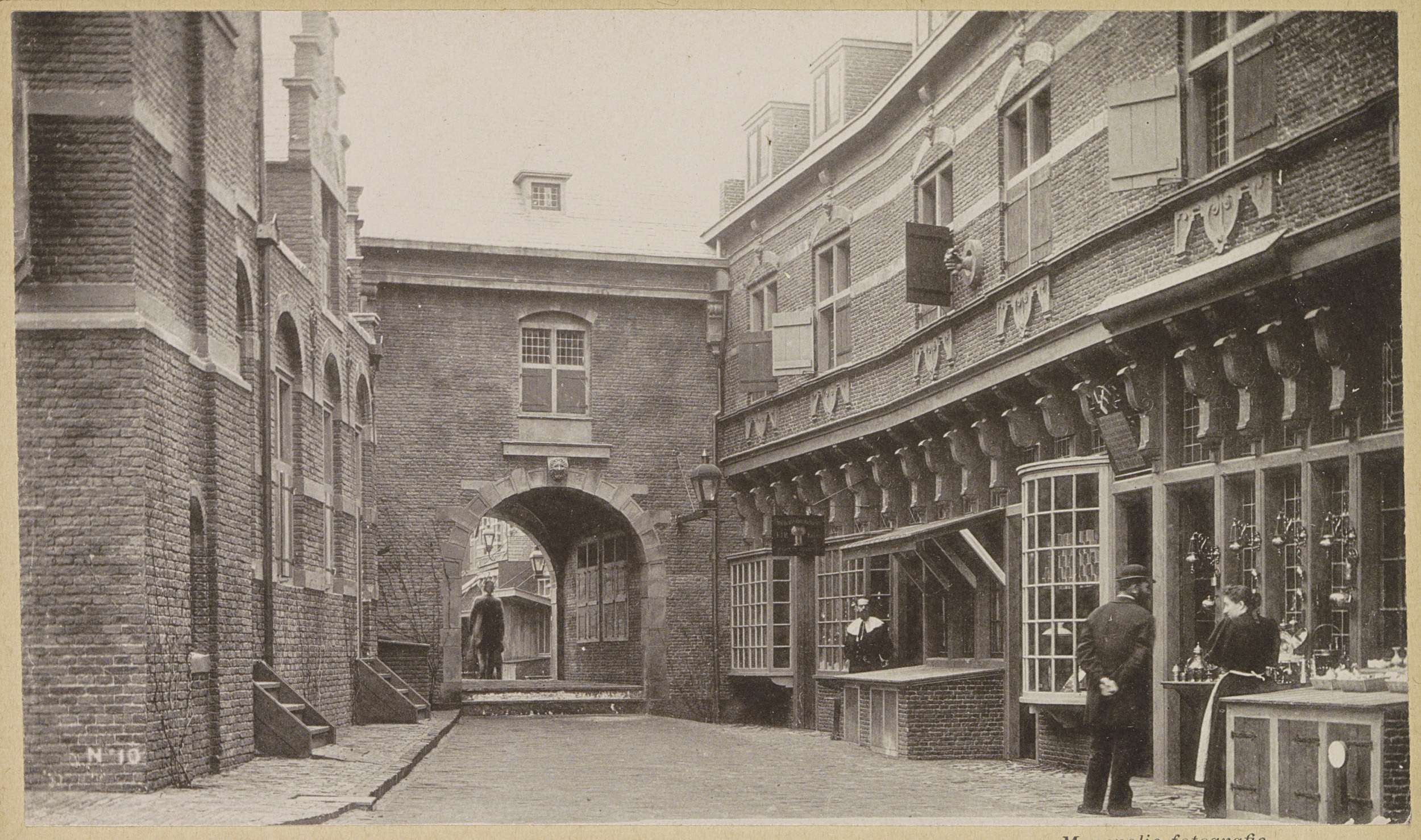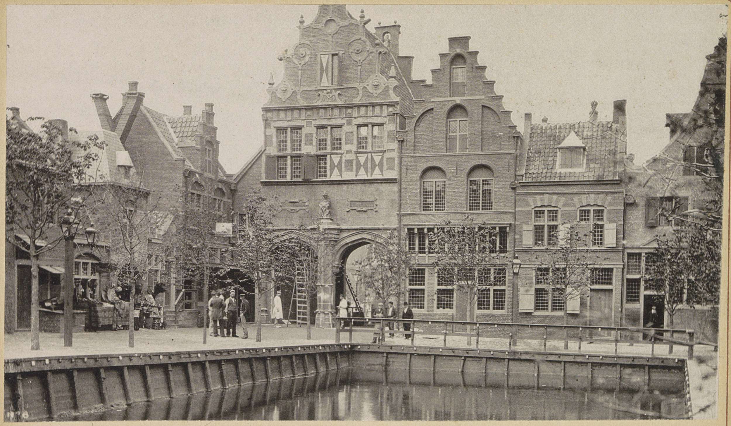 Straat met oud-Hollandse gevels en poort tijdens de ...