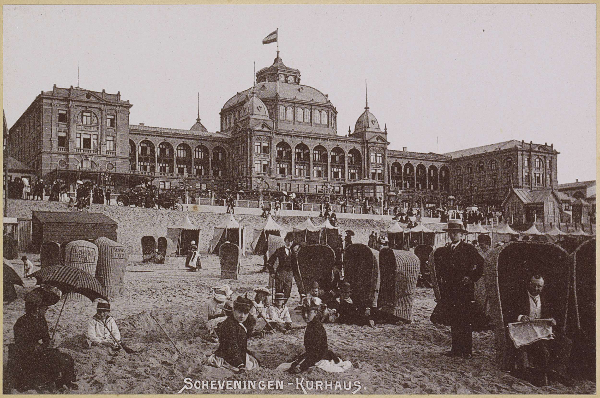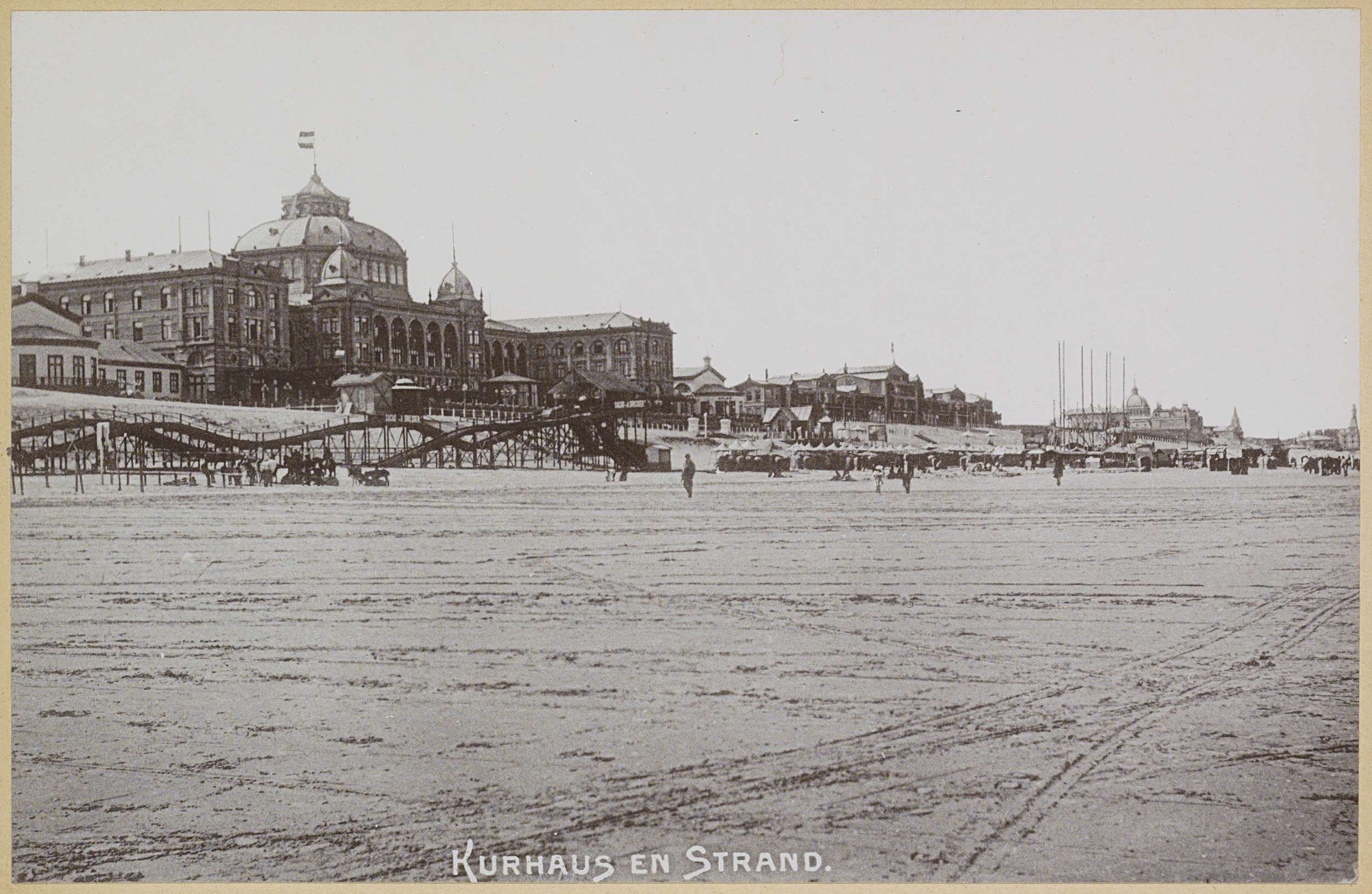 Gezicht op het strand en het Kurhaus in Scheveningen
