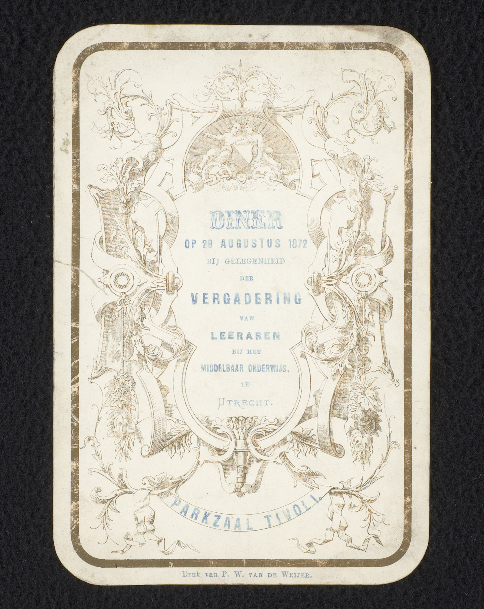 Menukaart voor het diner bij de 45e Algemeene Vergad...
