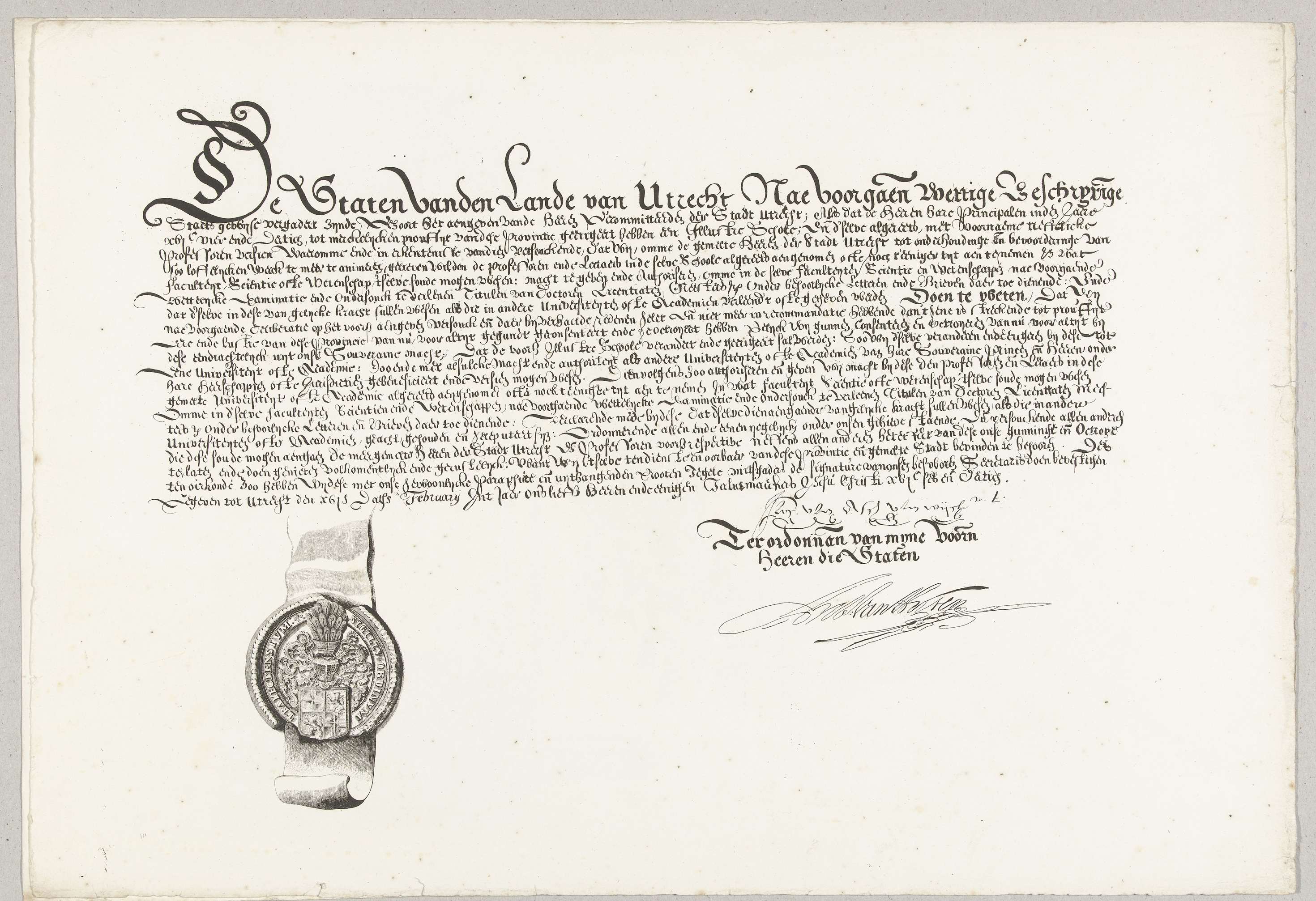 Facsimile van de octrooi van de Staten van Utrecht t...